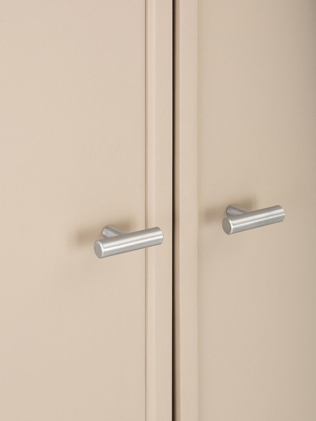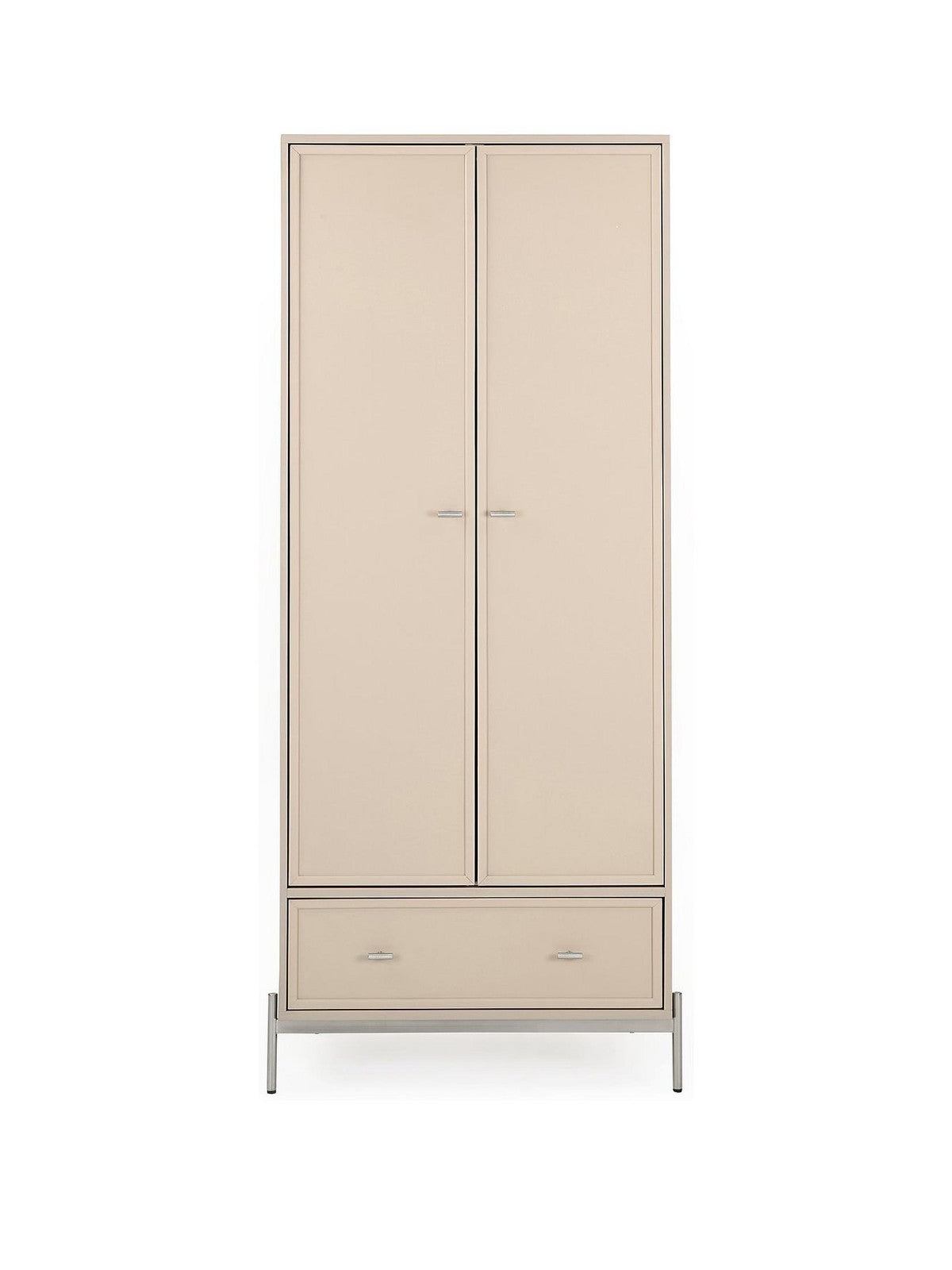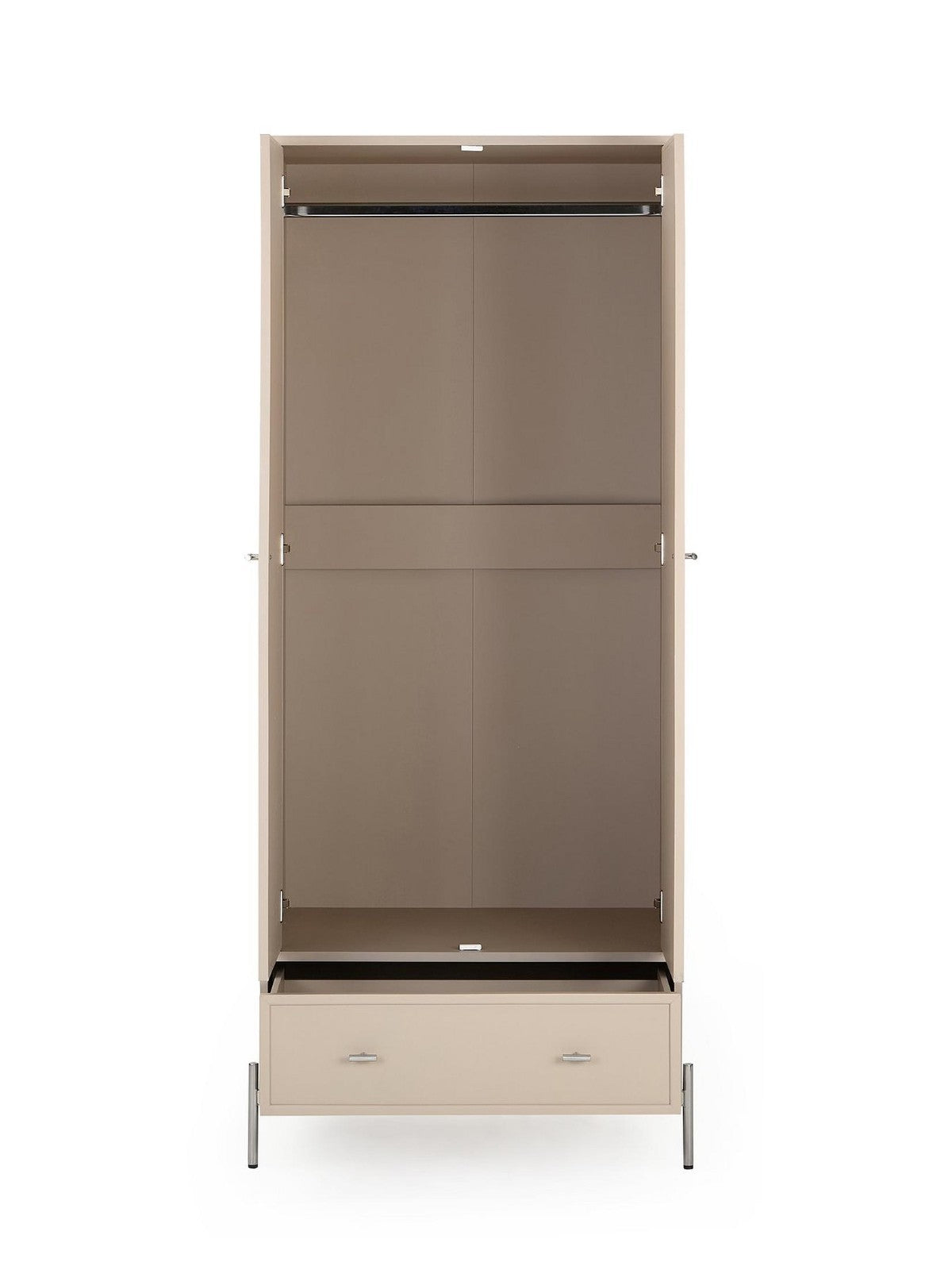 Behind the doors you'll find a hanging rail for neat clothes organisation, and the single drawer offers extra room for folded fashion. The whole thing sits on a sleek metal base which echos the design of the handles.