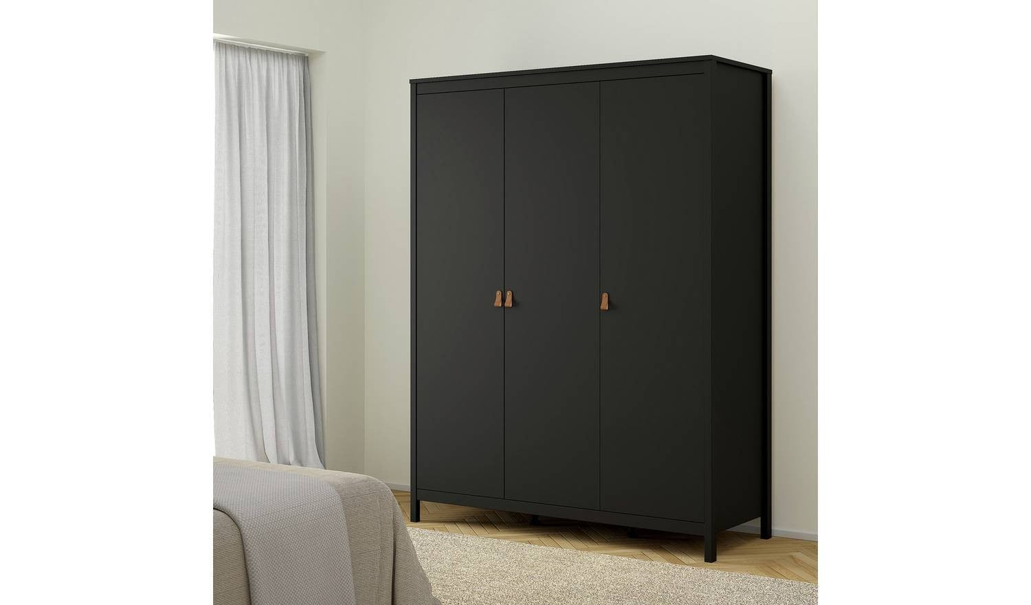 Tvilum Madrid 3 Door Wardrobe Black Storage Organiser Bedroom Furniture