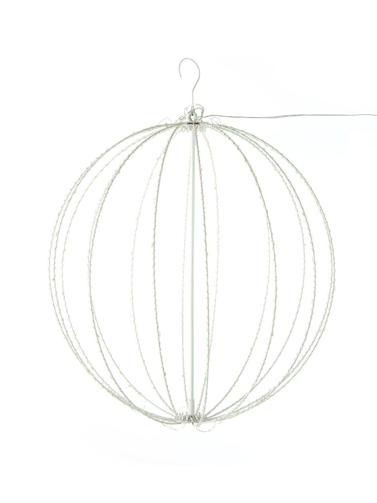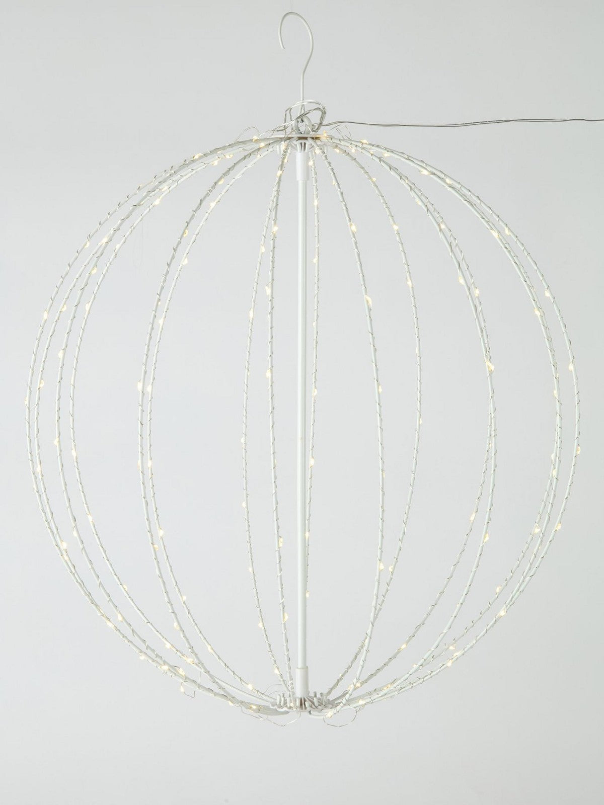 Illuminate your garden with this stunning multifunction outdoor ball light. Measuring 50cm in diameter, it features 160 warm white LEDs that can be set to 8 different festive lighting modes. Constructed from durable metal with a 5m lead wire and an IP20 transformer, it's designed for seasonal outdoor use. The ball folds flat for compact, easy storage when not in use, making it a practical and dazzling addition to your holiday decor.