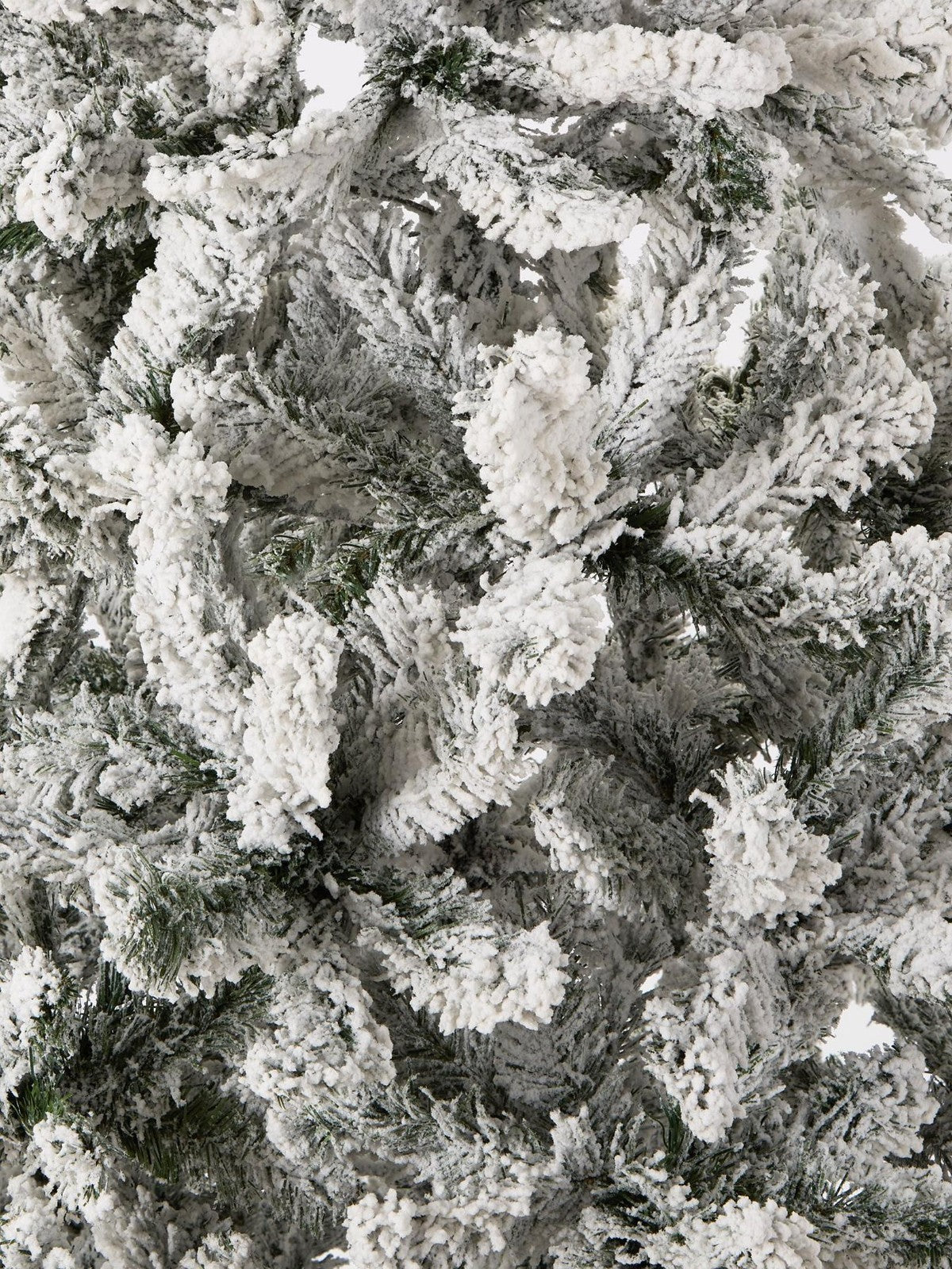 Fluff branches upon assembly for best shape. Store in a cool, dry place in its original box or a dedicated storage bag to protect the flocking. Gently dust with a soft cloth if needed.