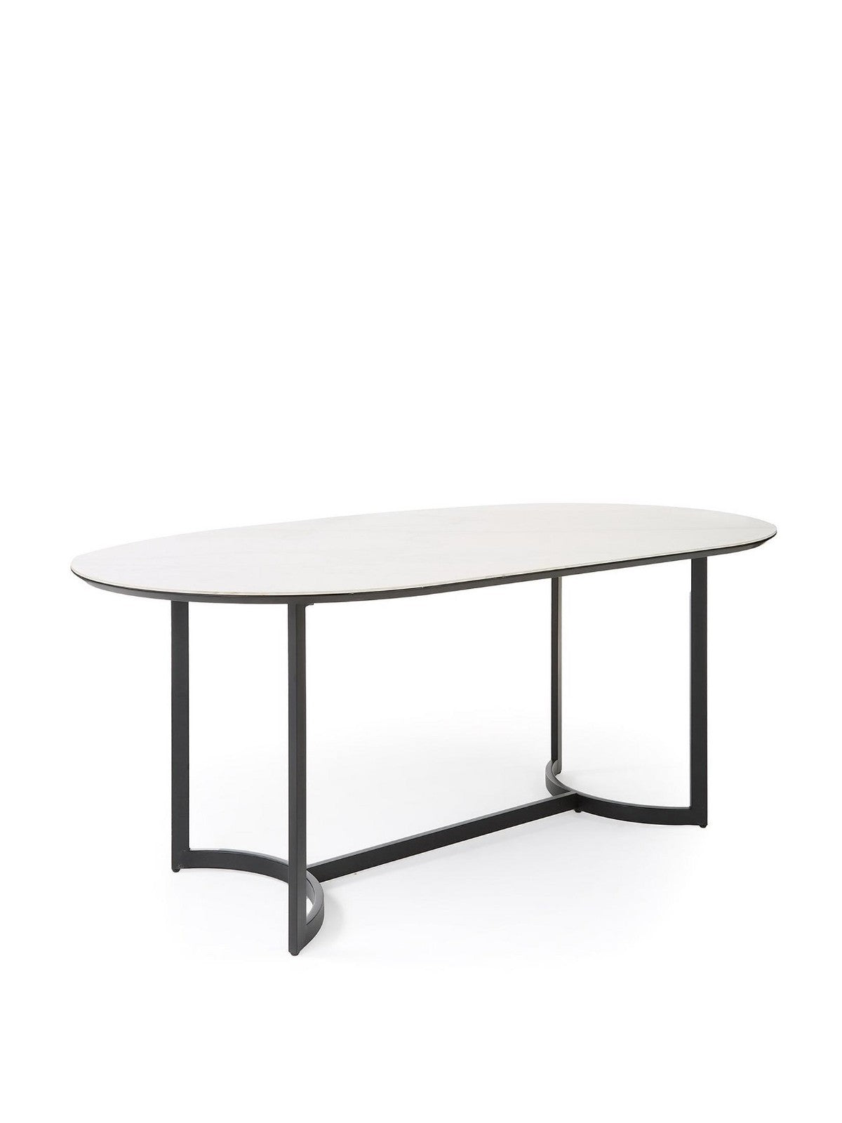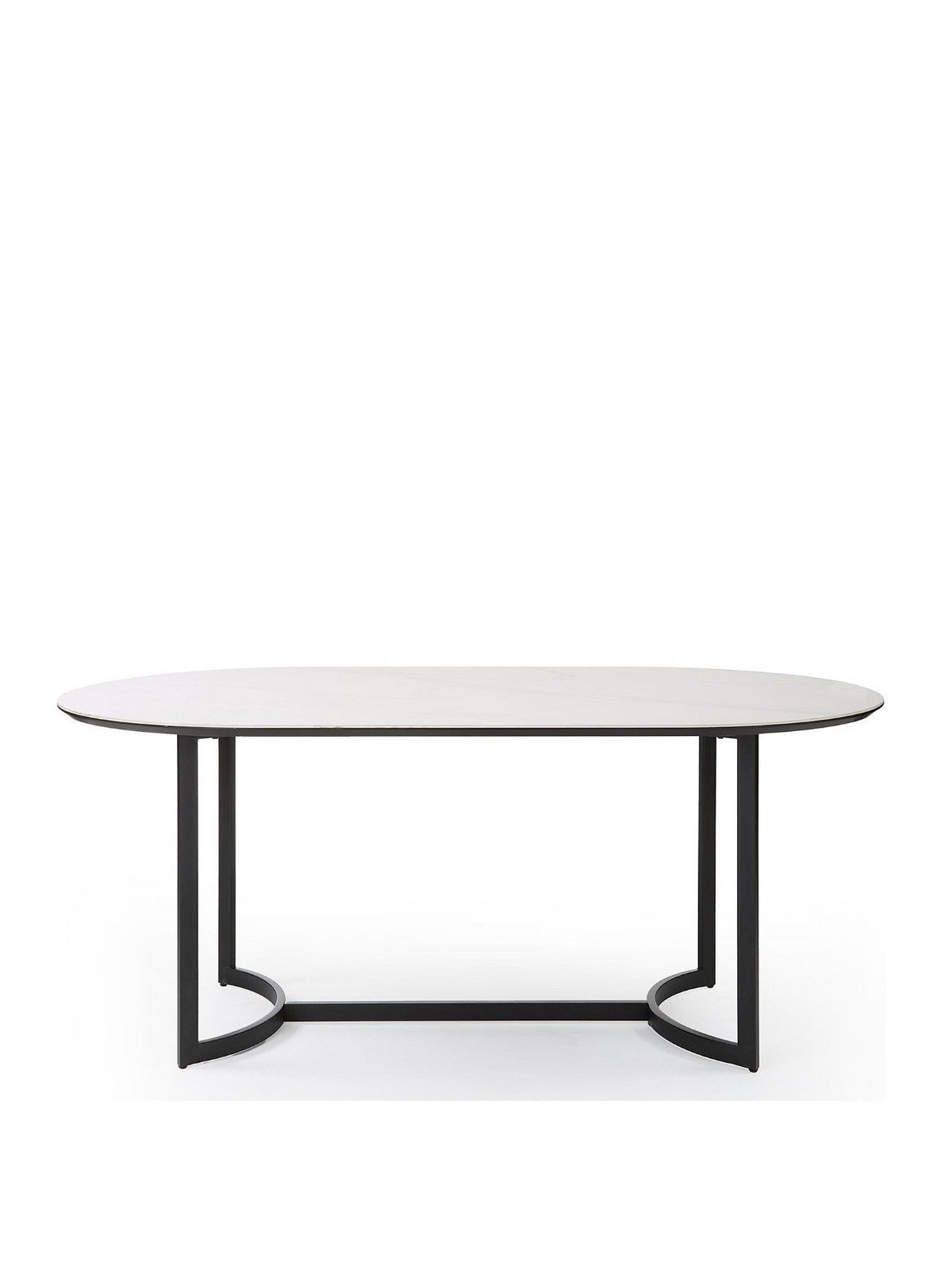 Alba 180cm Ceramic Top Oval Dining Table White Marble Effect Black Base