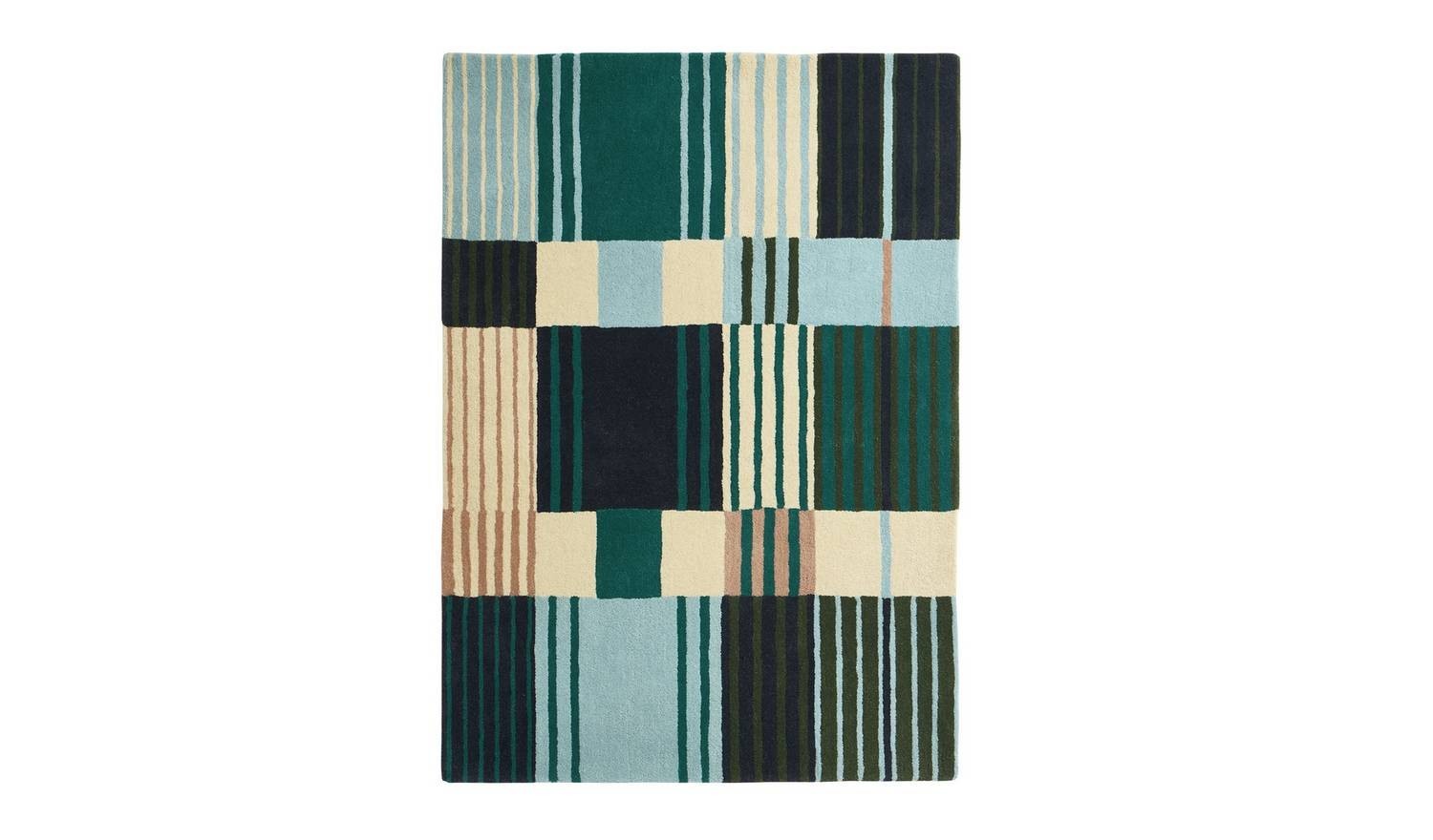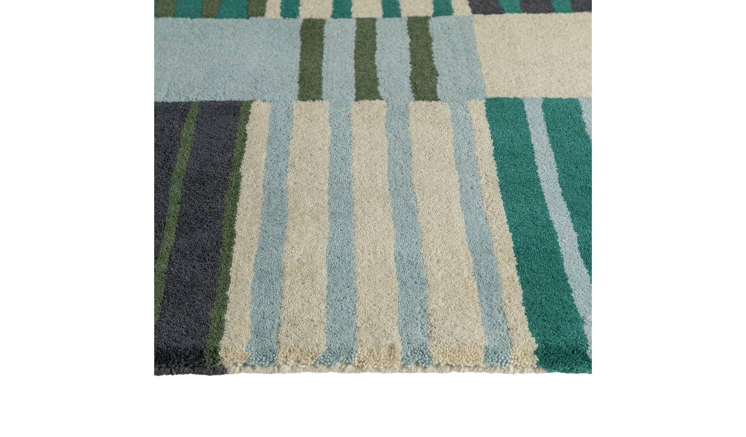 Archive Broken Stripe Blue Wool Rug 120x170cm Patterned Living Room Floor