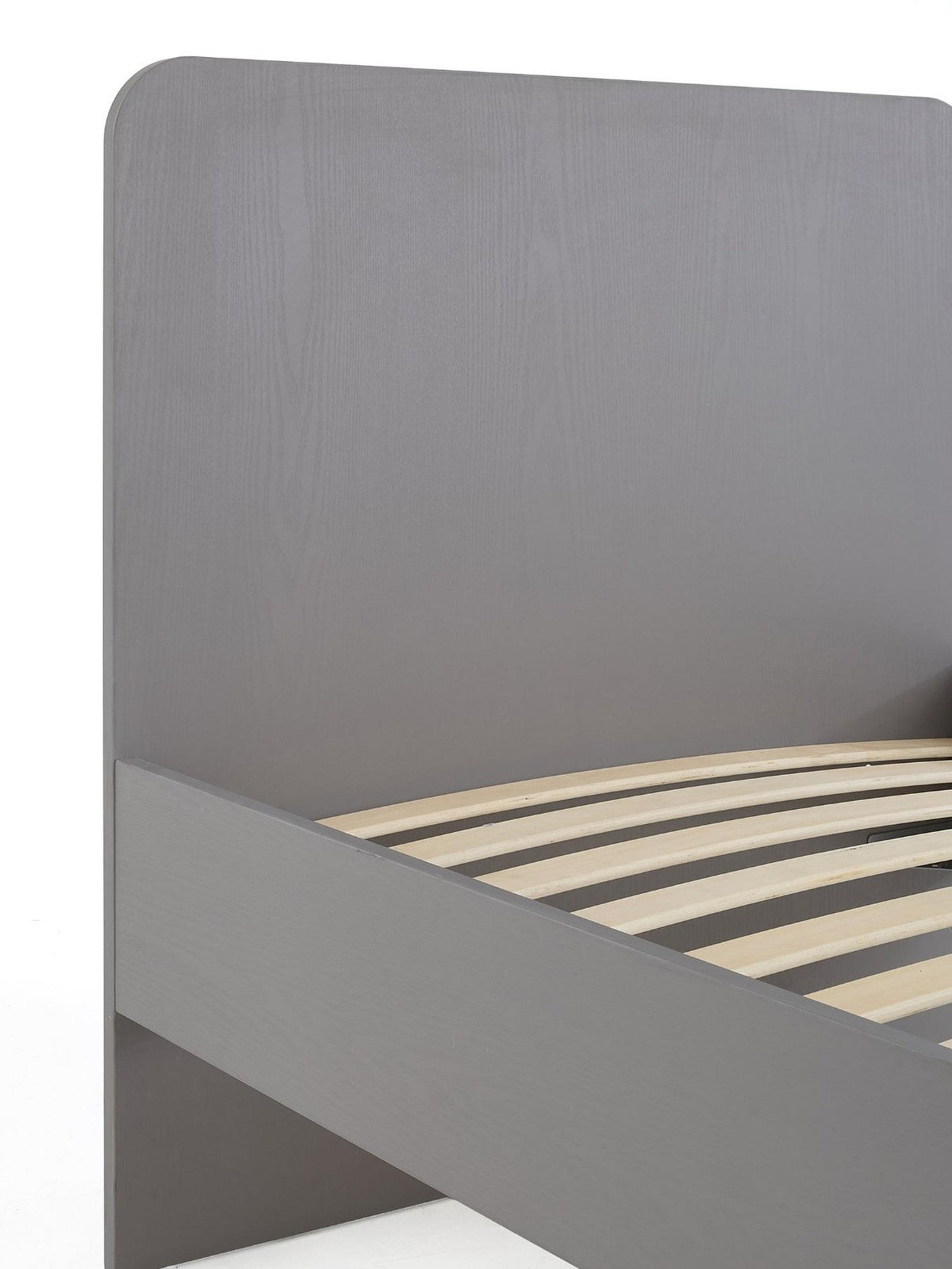The Aspen Children's Single Bed in sophisticated grey oak brings contemporary design to younger bedrooms. Featuring a stylish headboard, low footboard, and curved safety corners, this bed combines modern aesthetics with practical comfort - perfect for children transitioning to more mature bedroom decor.