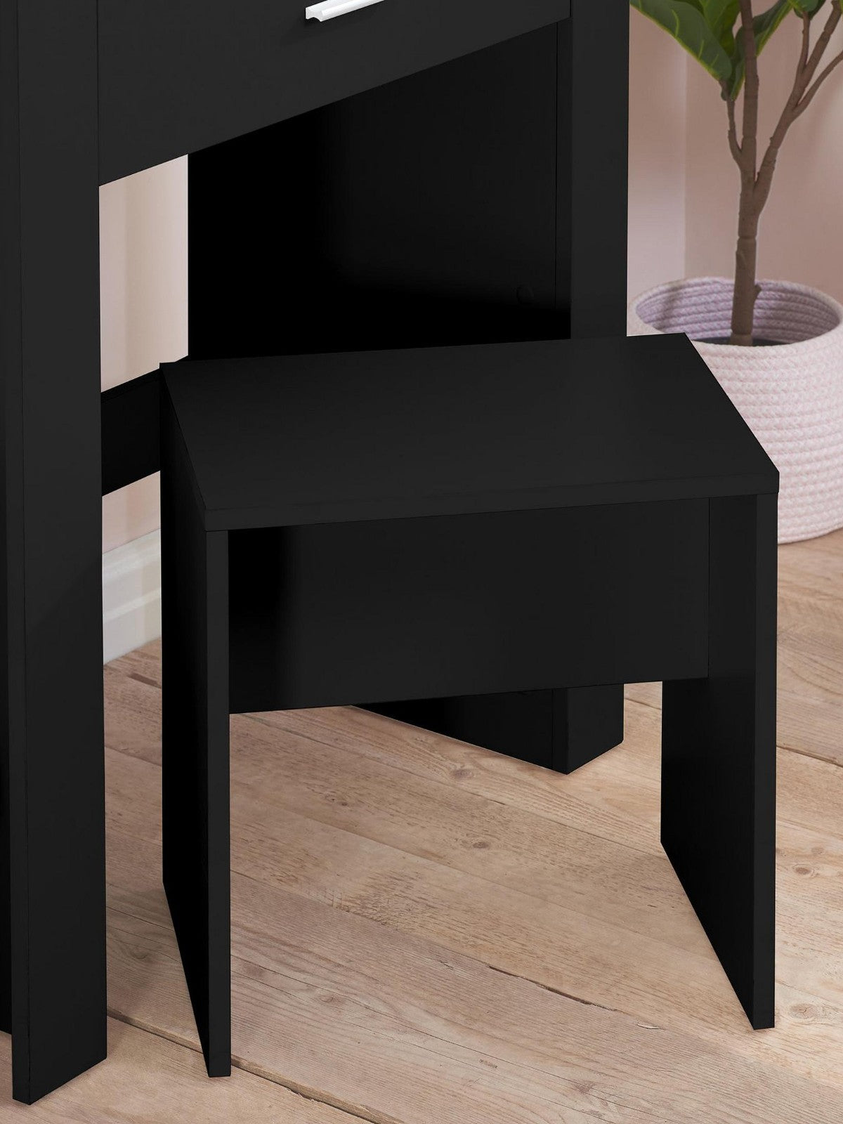 Includes a matching black stool for a fully coordinated and comfortable setup