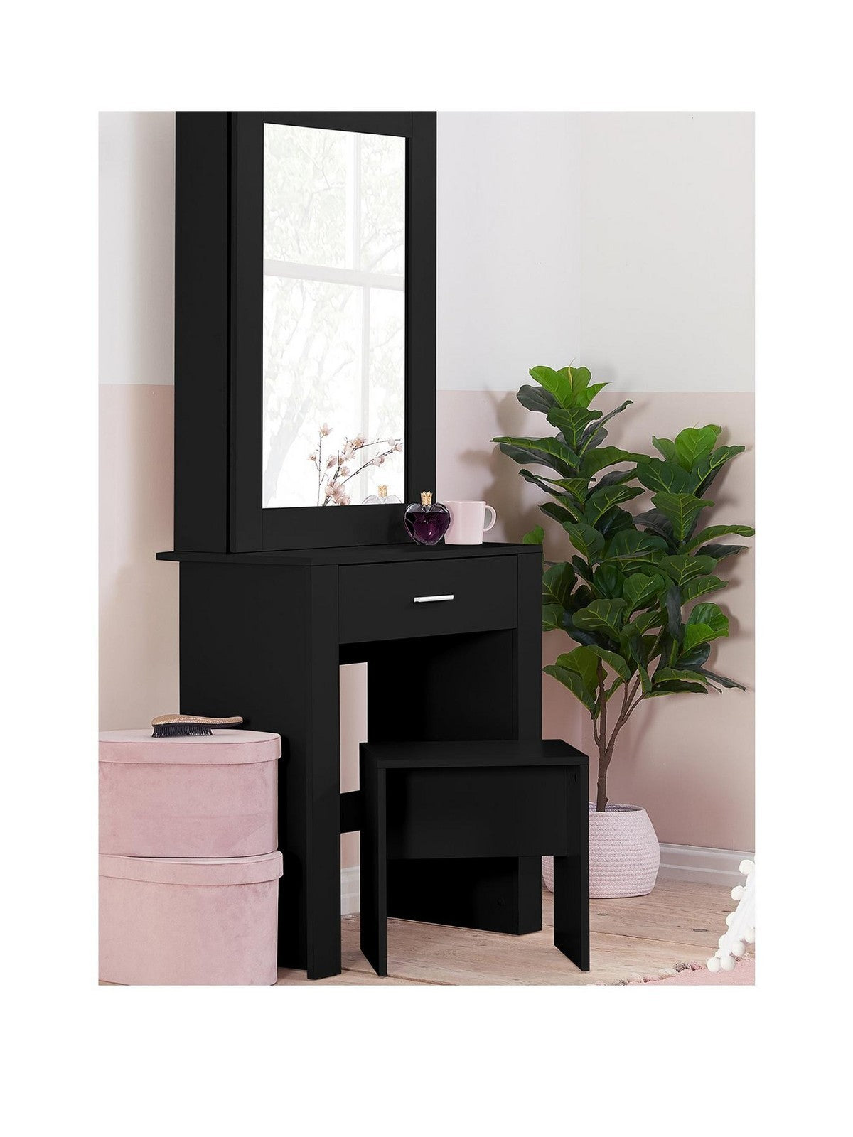 Birlea Evelyn Sliding Mirror Dressing Table Black | Vanity Desk with Stool