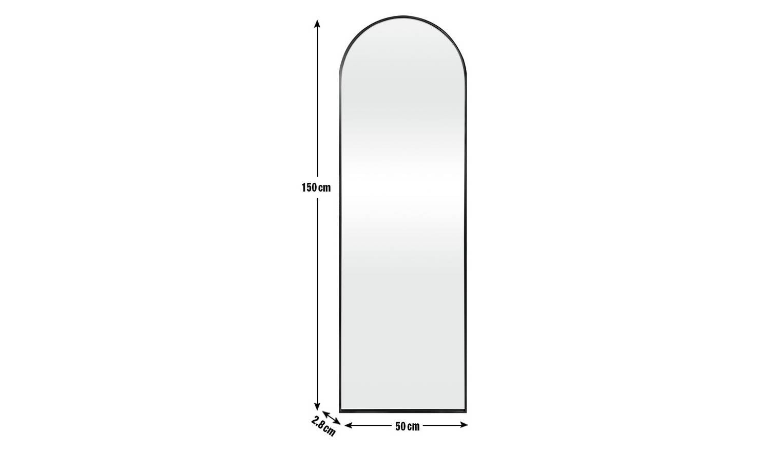 Black Full Length Arch Wall Mirror - 150x50cm