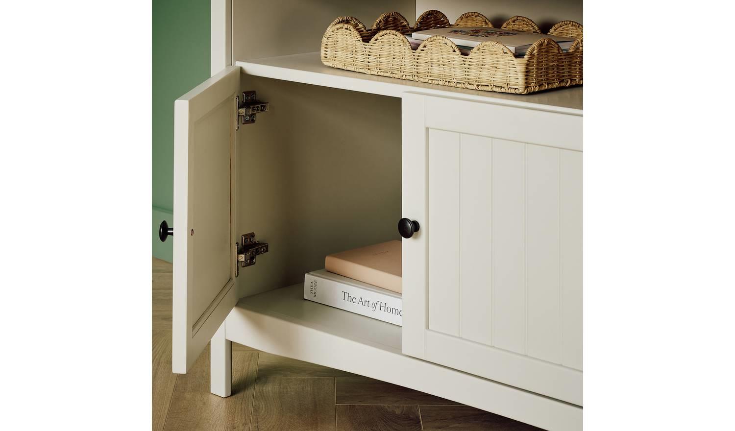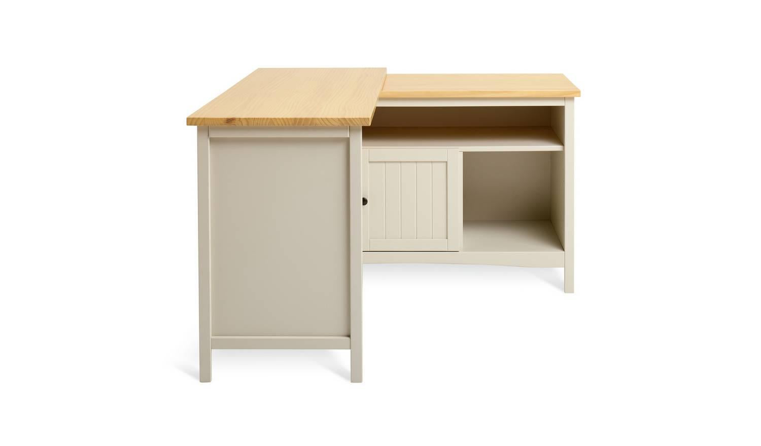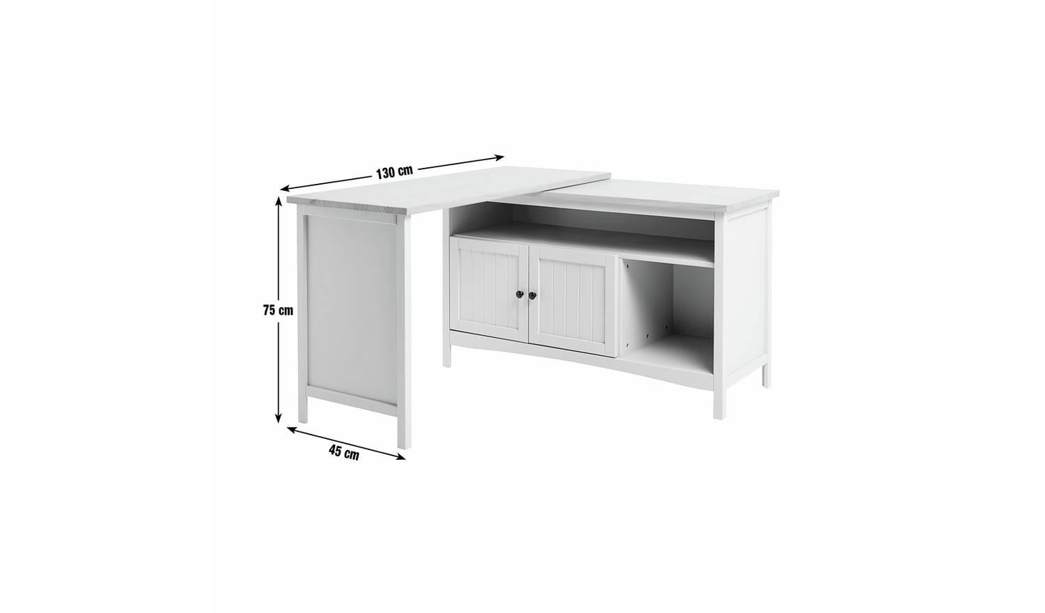 Now it's a sideboard. Now it's a desk. And all it takes is a swivel. What a clever piece of furniture this is. At first glance it's a handsome country style cabinet. All light beige paint and polished pine. But open it out and it instantly becomes a workstation with an ample sized desktop and plenty of chair space underneath. Storage is sorted too, with 1 cupboards, a shelf, and a cubby hole. A smart, space saving, multi-tasker with oodles of natural style.
