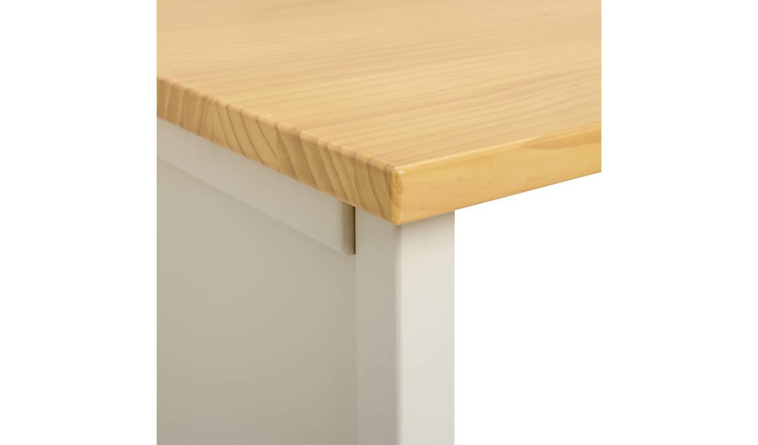 - Made from pine and MDF with a solid pine finish with metal handles.