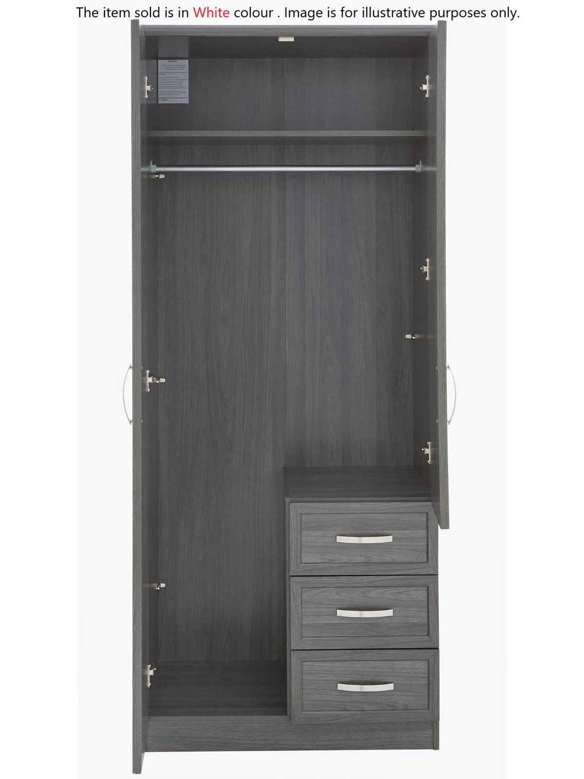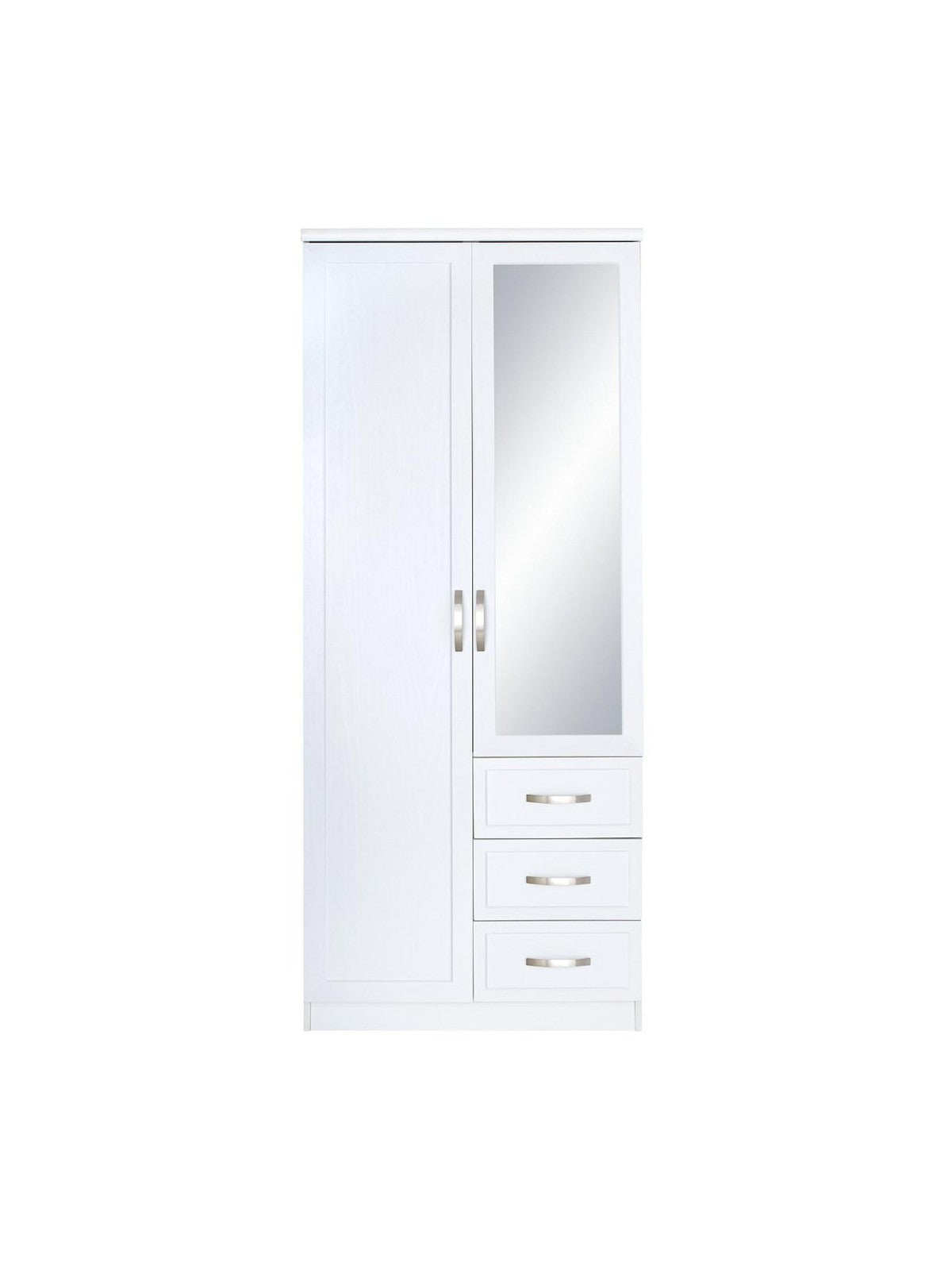 Camberley 2 Door Mirrored Wardrobe White 3 Drawer Storage Bedroom