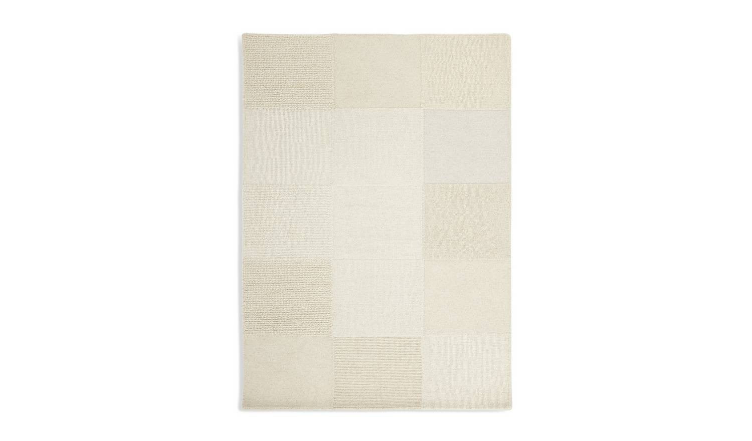 Checkerboard Natural Wool Cut Pile Rug 160x230cm Neutral Home Decor