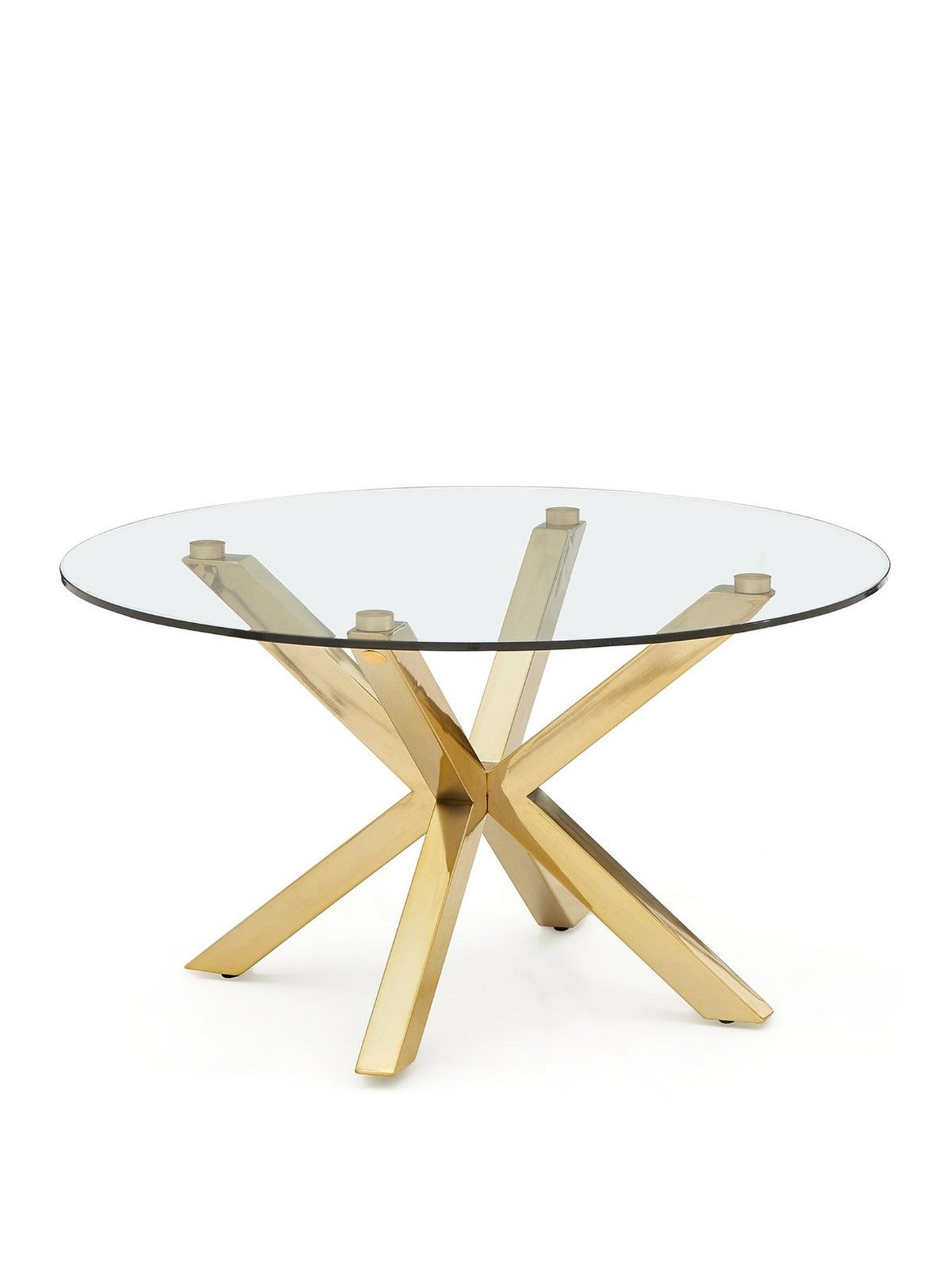 The Chopstick Coffee Table combines dramatic style with practical functionality. Featuring four intersecting brass-coloured legs that create a captivating visual statement, this 80cm round table brings modern elegance to any living space while maintaining easy maintenance and versatile appeal.