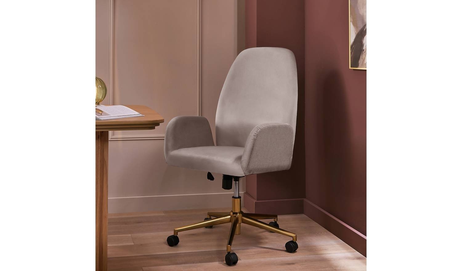 Clarice Velvet Office Chair - Beige