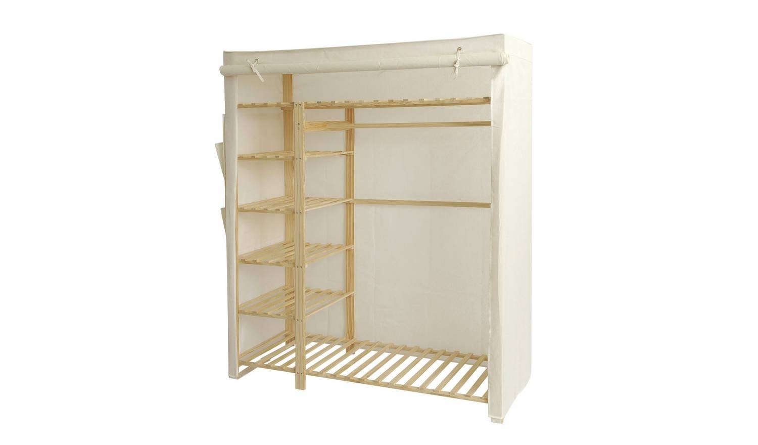 Covered Triple Wardrobe Cream Storage Organiser Bedroom Furniture