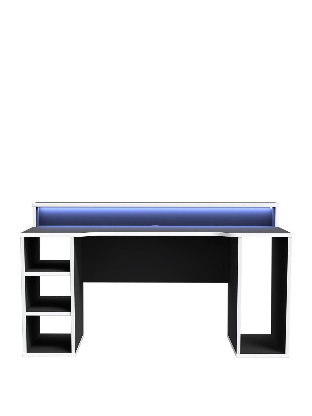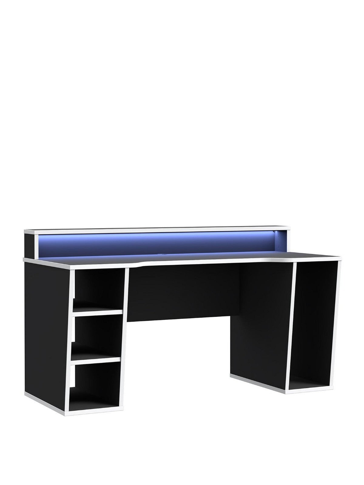Dylan Gaming Desk with LED Lighting Black | 160cm Wide | Shelf | Modern Home