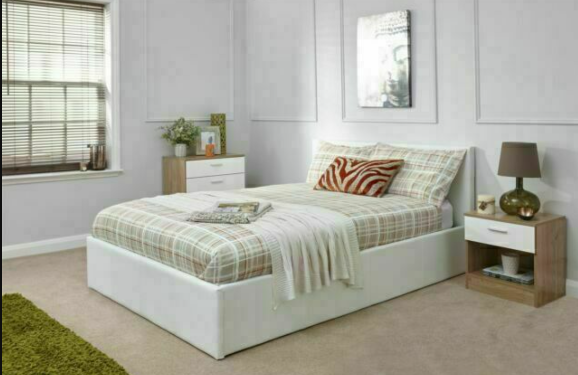 End Lift Ottoman Storage Bed 4ft Small Double White | Faux Leather | Gas Lift