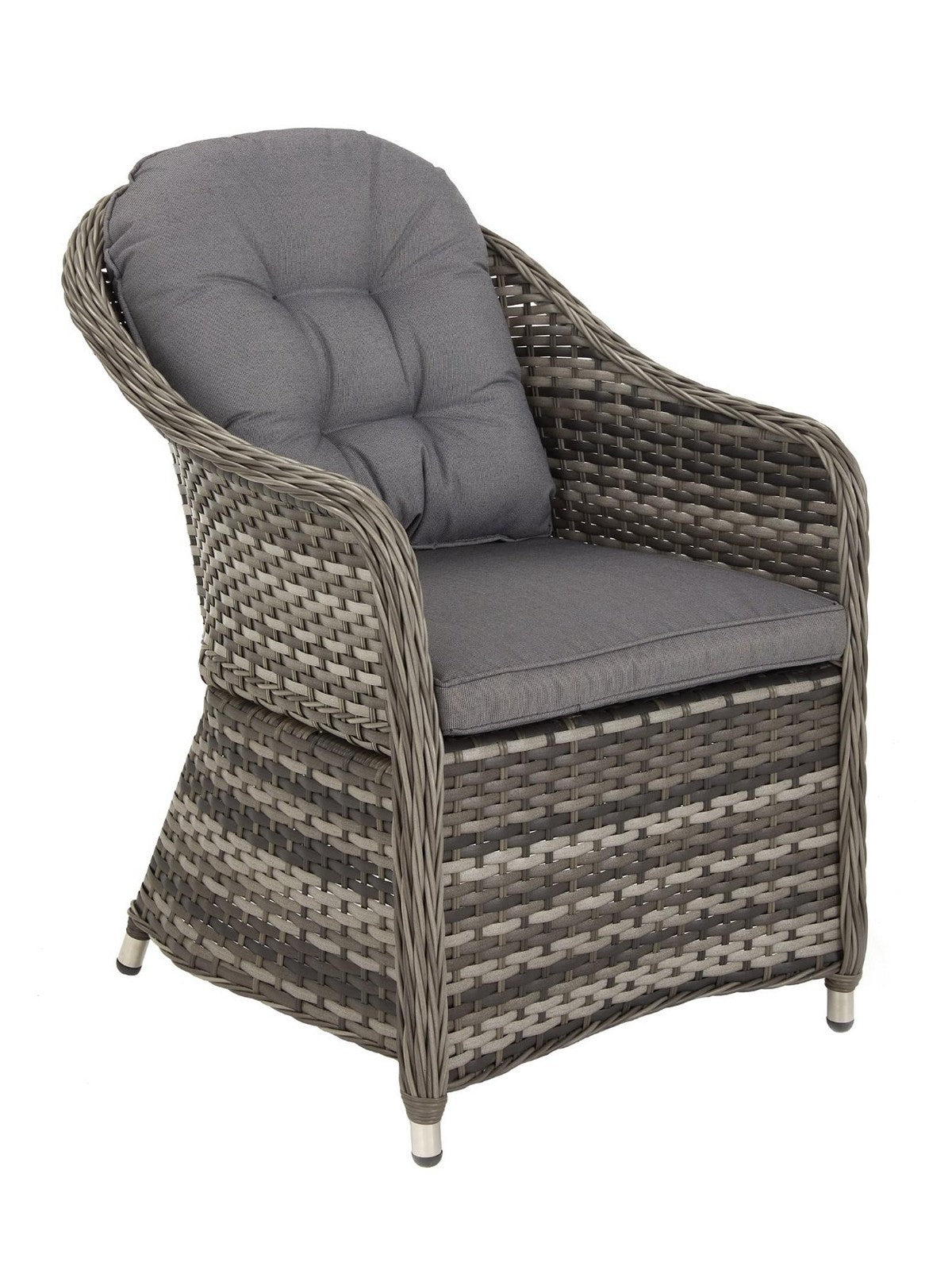 This elegant set features 6 comfortable armchairs, all in a stylish rattan effect complete with coordinating padded cushions. A circular Lazy Susan table with a tempered glass top is also included, making this set the perfect place to enjoy a buffet in the sunshine!