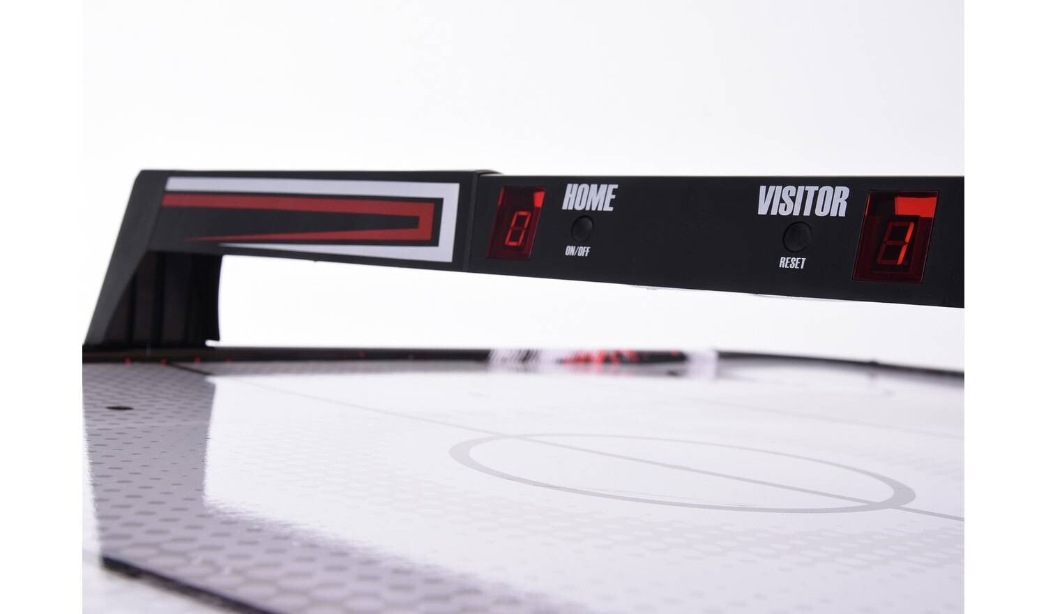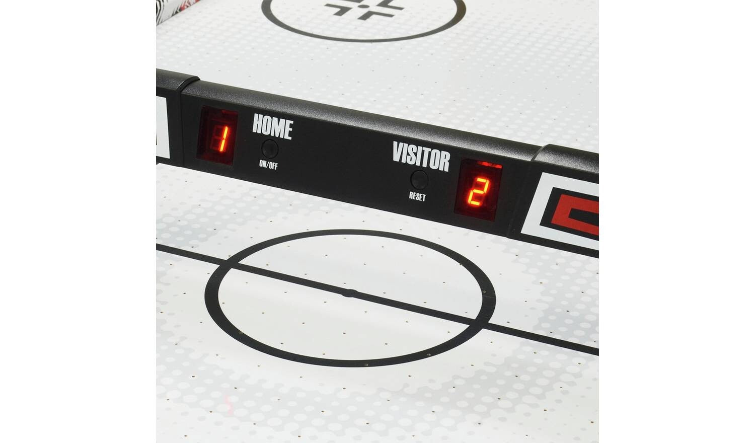 High output air powered playing surface. A sleek, overhead LED scorer system helps keep track of the fast-action as you rack up the goals.
