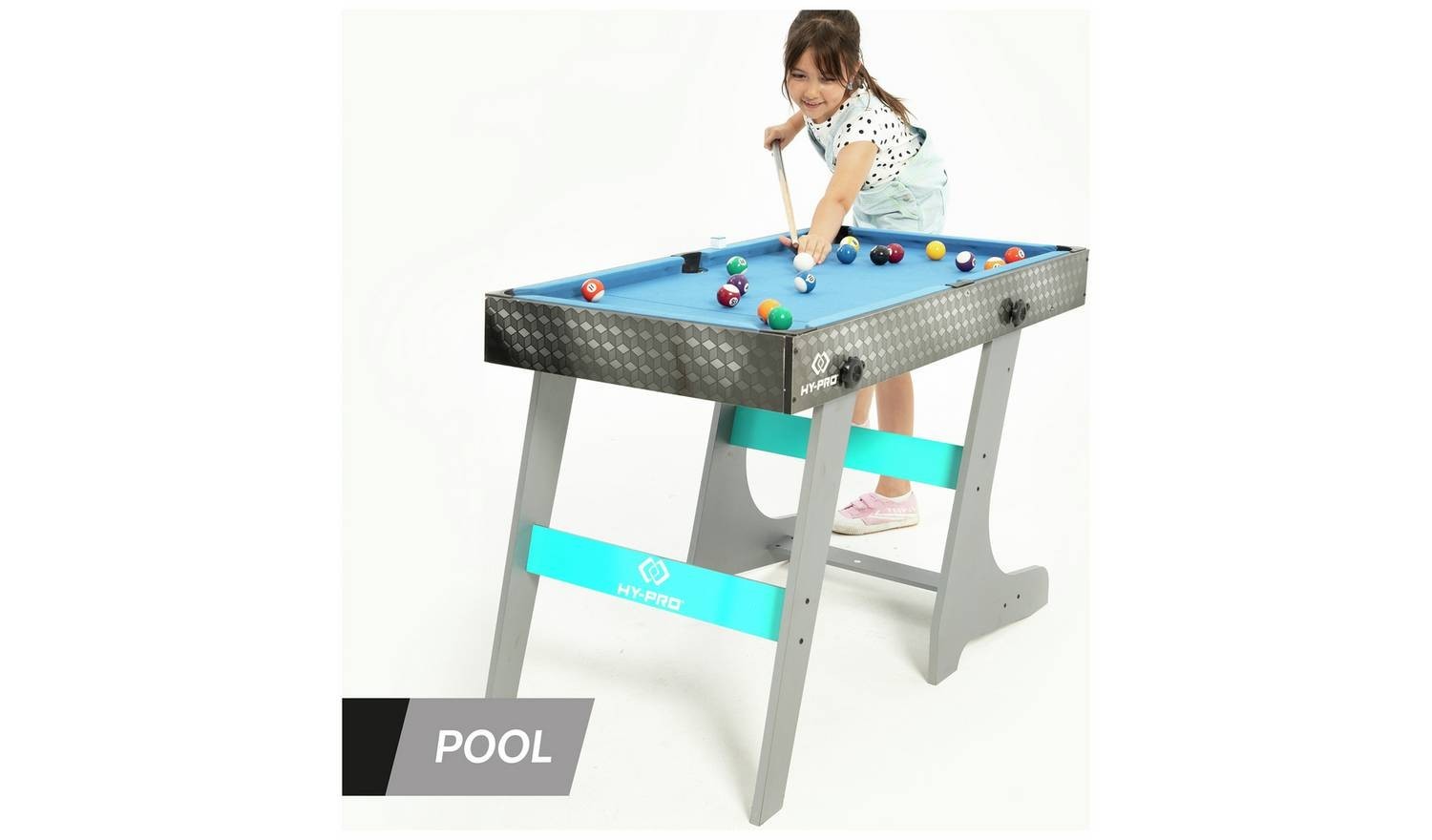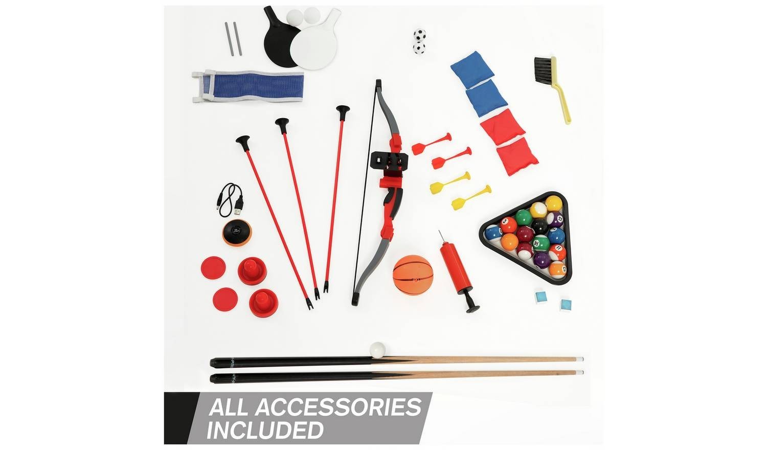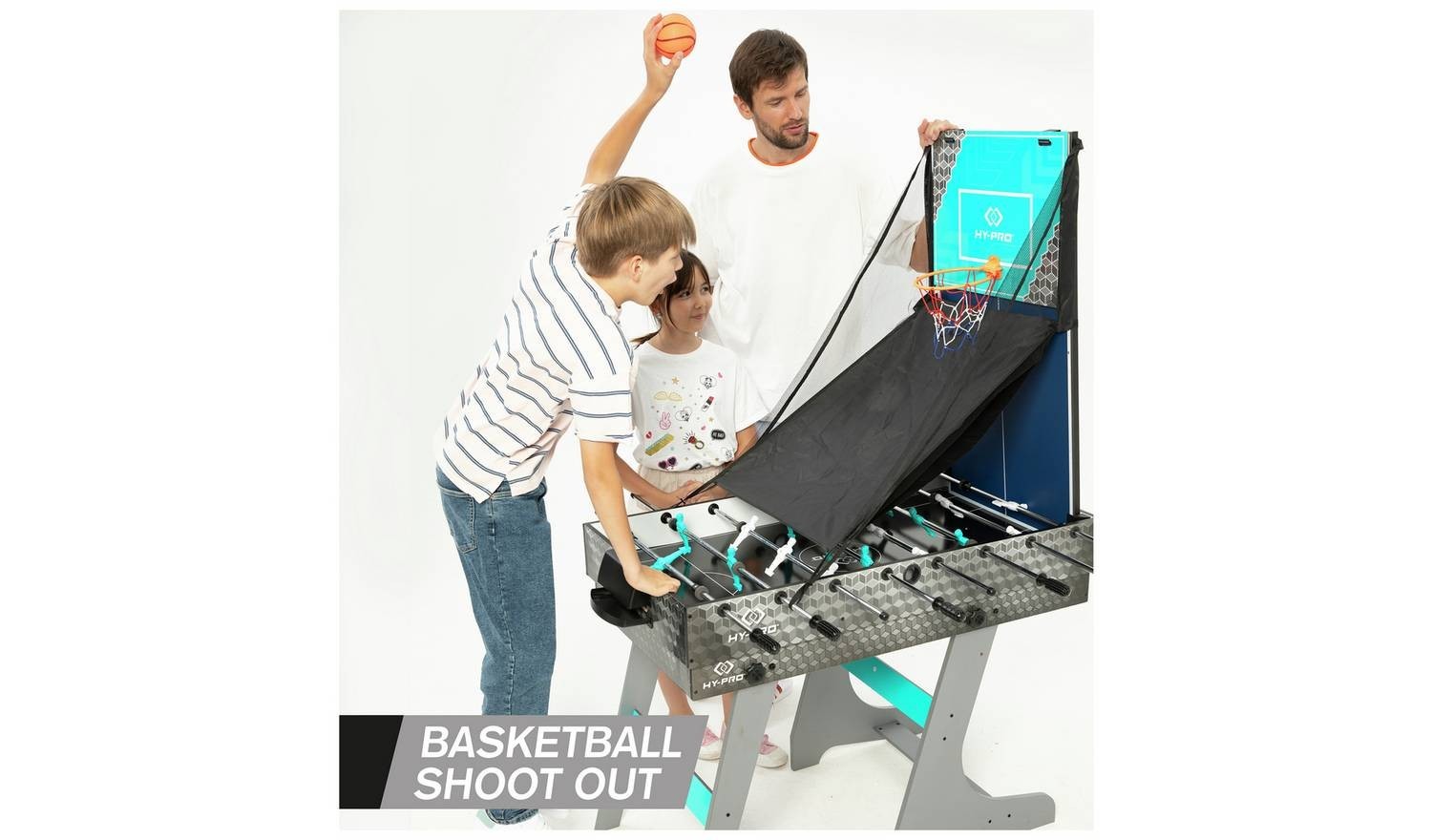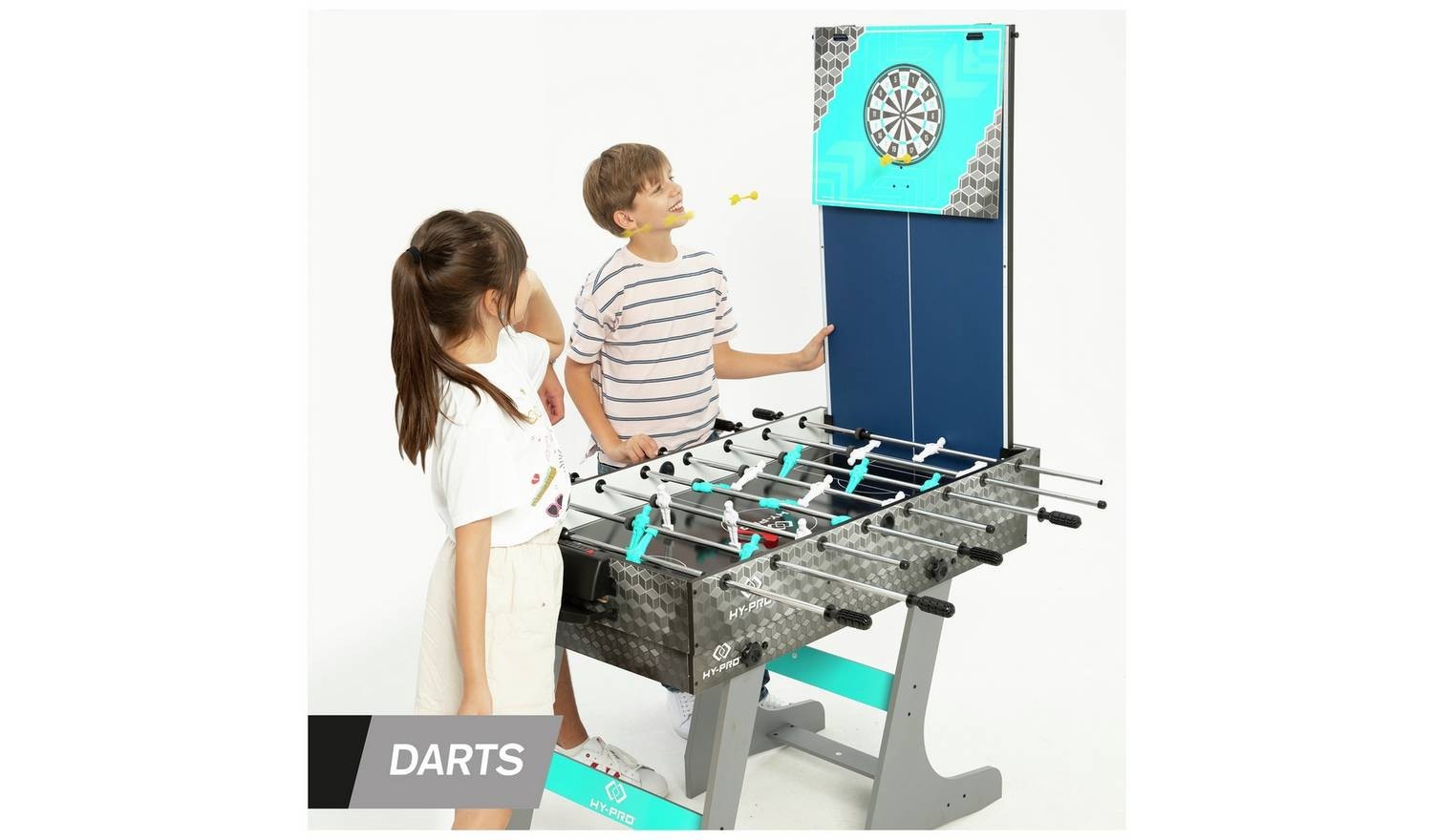 Loaded with 8 action packed games the Hy-Pro 8 in 1 table delivers heaps of family fun. Play 1 on 1 Table Football, Table Tennis, Pool or Hockey. Take aim with Archery, Darts and Bean Bag Toss or become a superstar with the inbuilt basketball system.