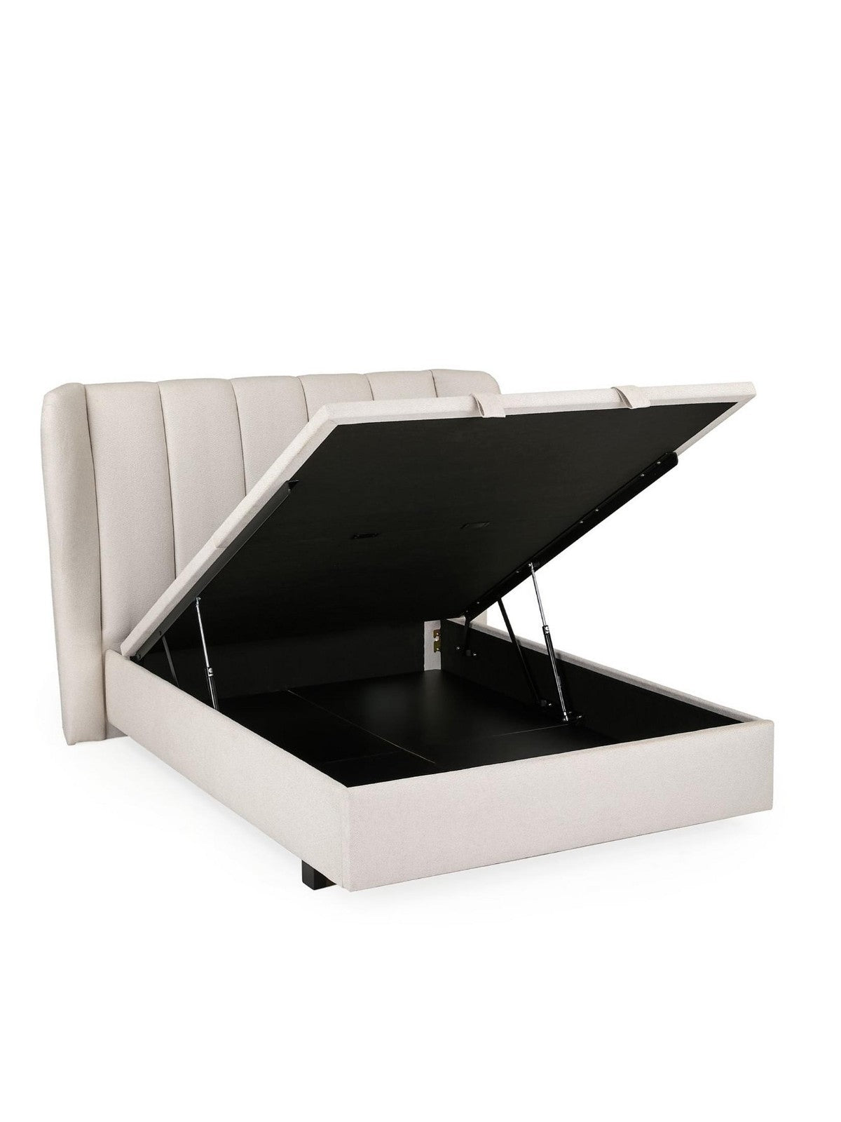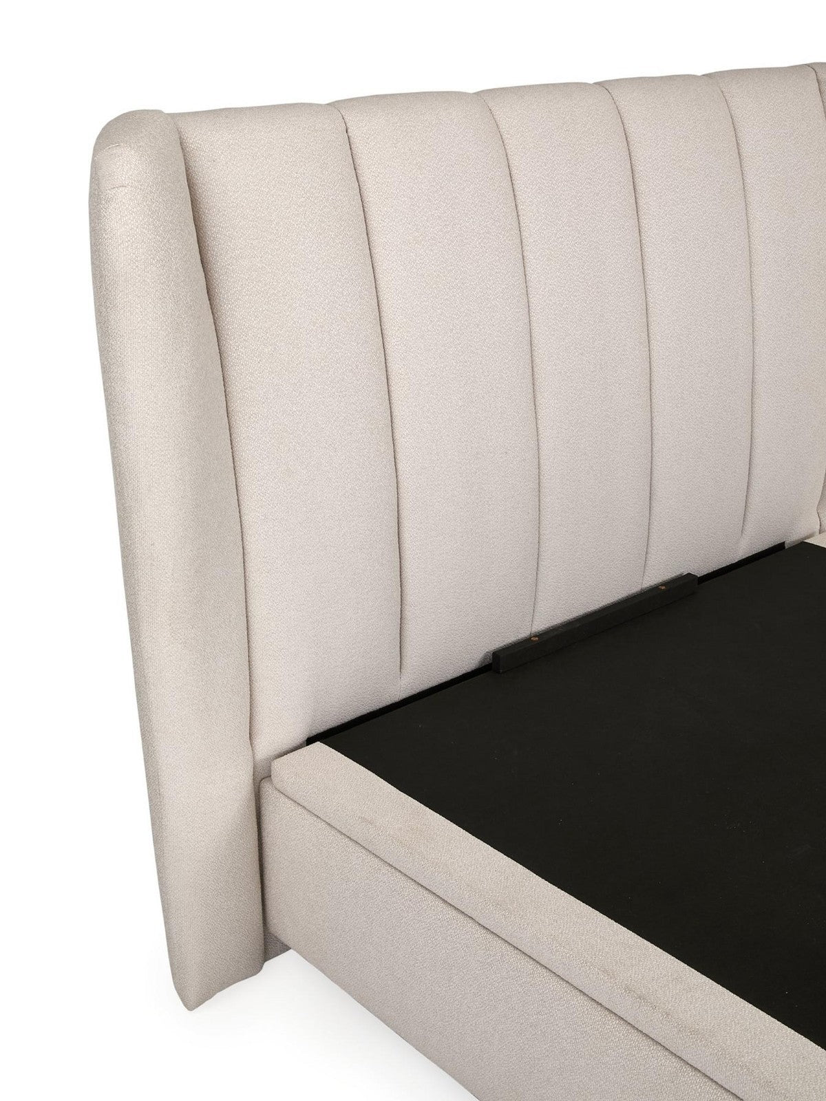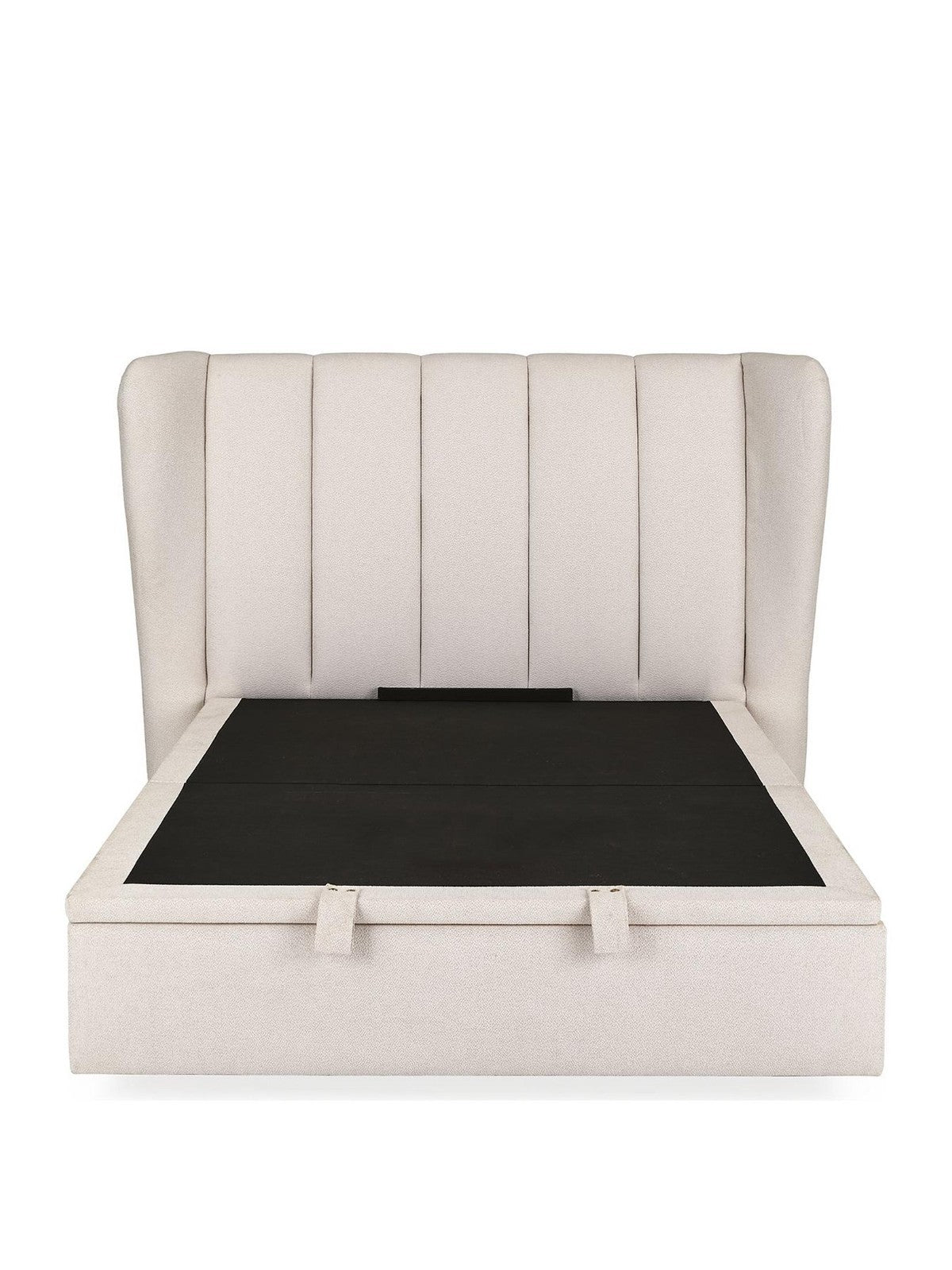 Jasper Lift Up Storage Double Bed Ivory | Winged Headboard | Ottoman Base