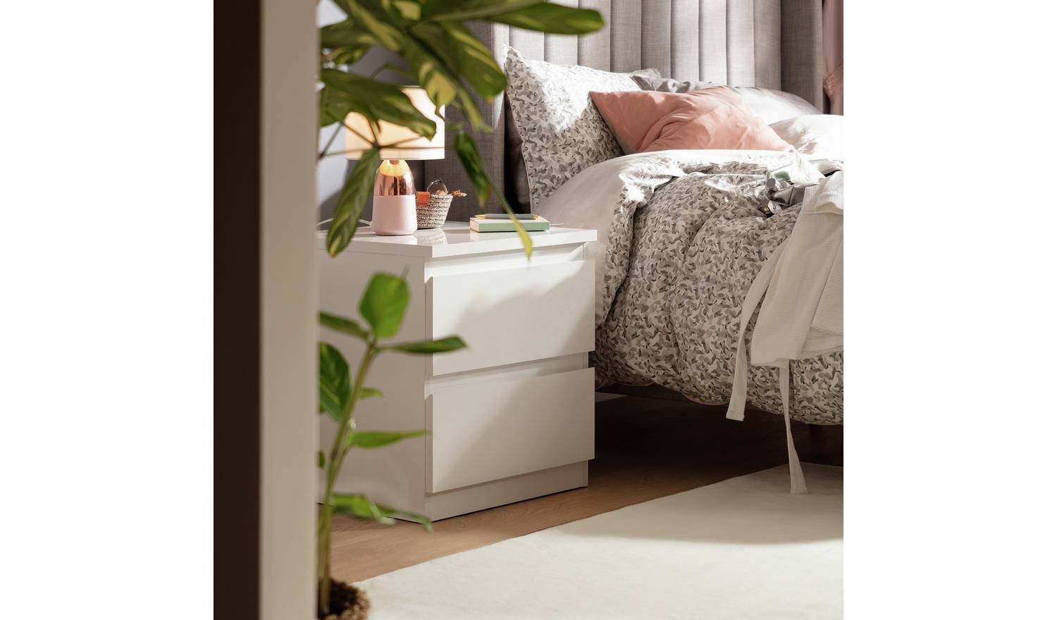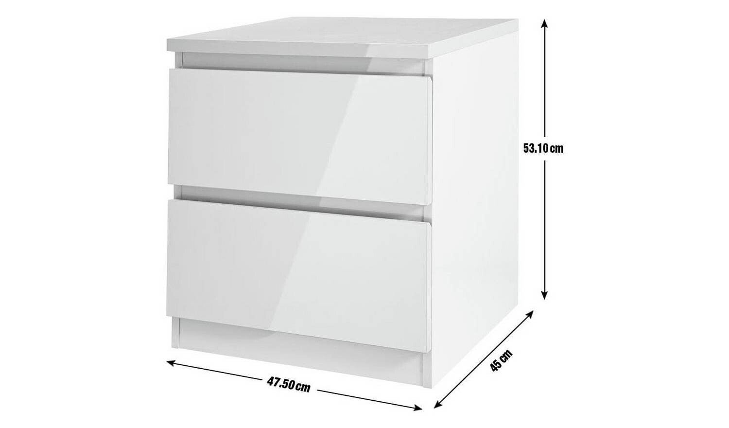 Jenson 2 Drawer Bedside Table White Gloss Modern Bedroom Storage