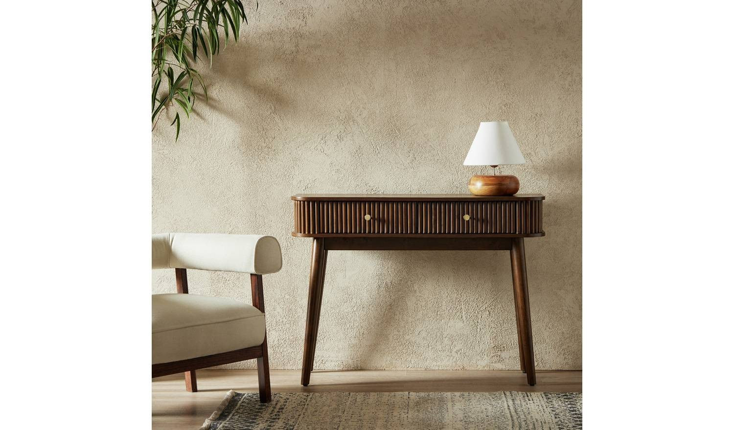 Kendi 2 Drawer Console Table Walnut Hallway Entryway Furniture Storage