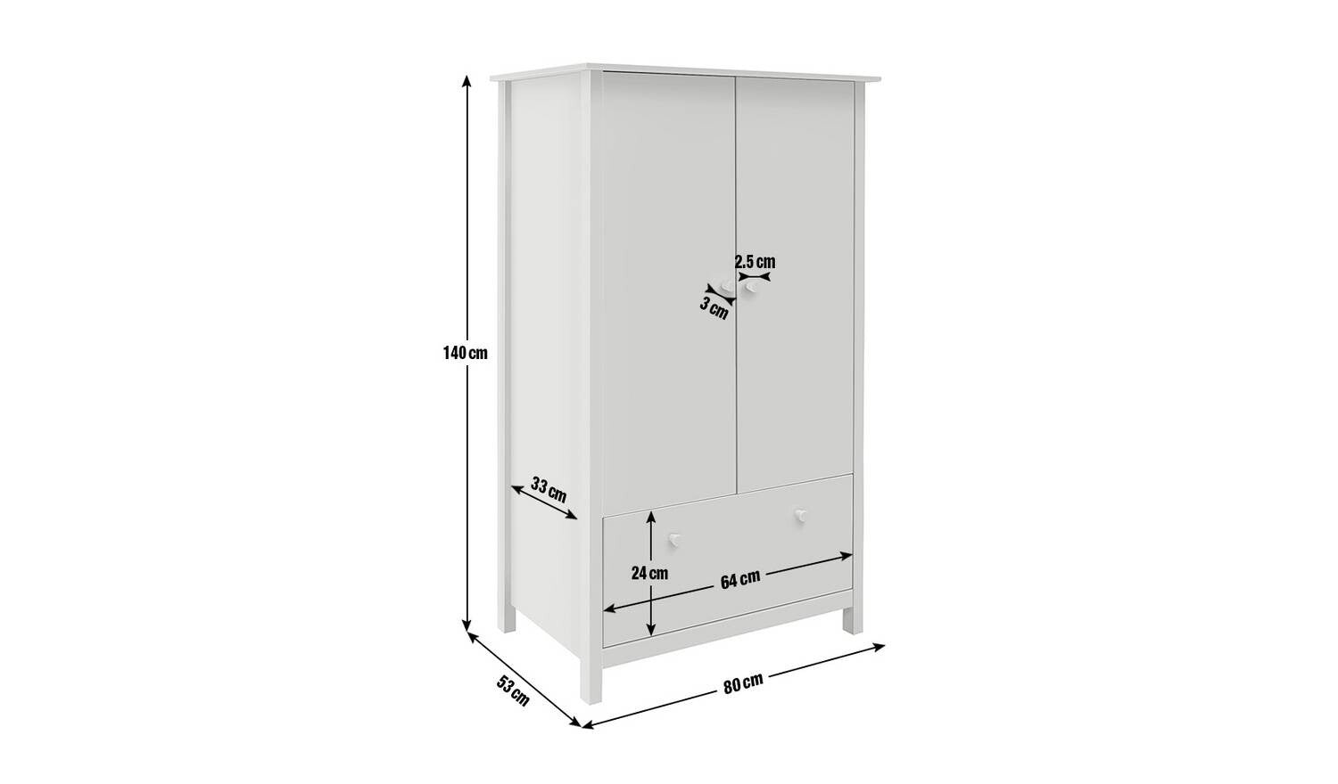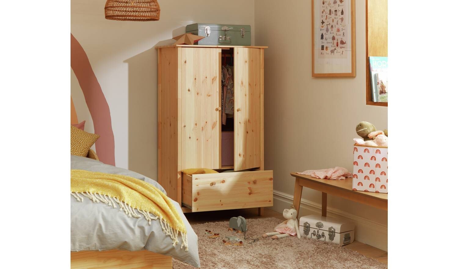 Kids Scandinavia Short 2 Door Wardrobe - Pine