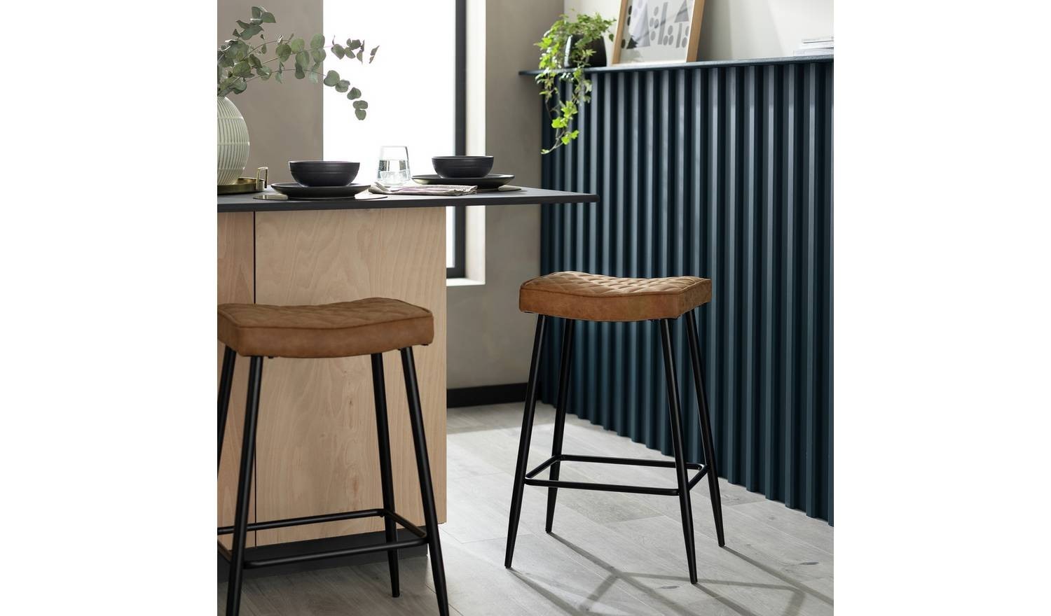 Kysen Faux Leather Counter Bar Stool Tan Modern Kitchen Island Seating