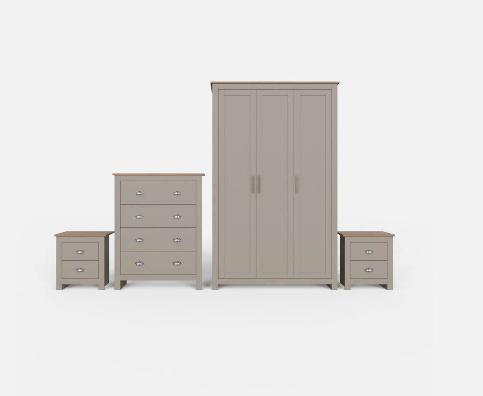 Lancaster 4 Piece Bedroom Set Grey Wardrobe Chest & 2 Bedside Tables Storage
