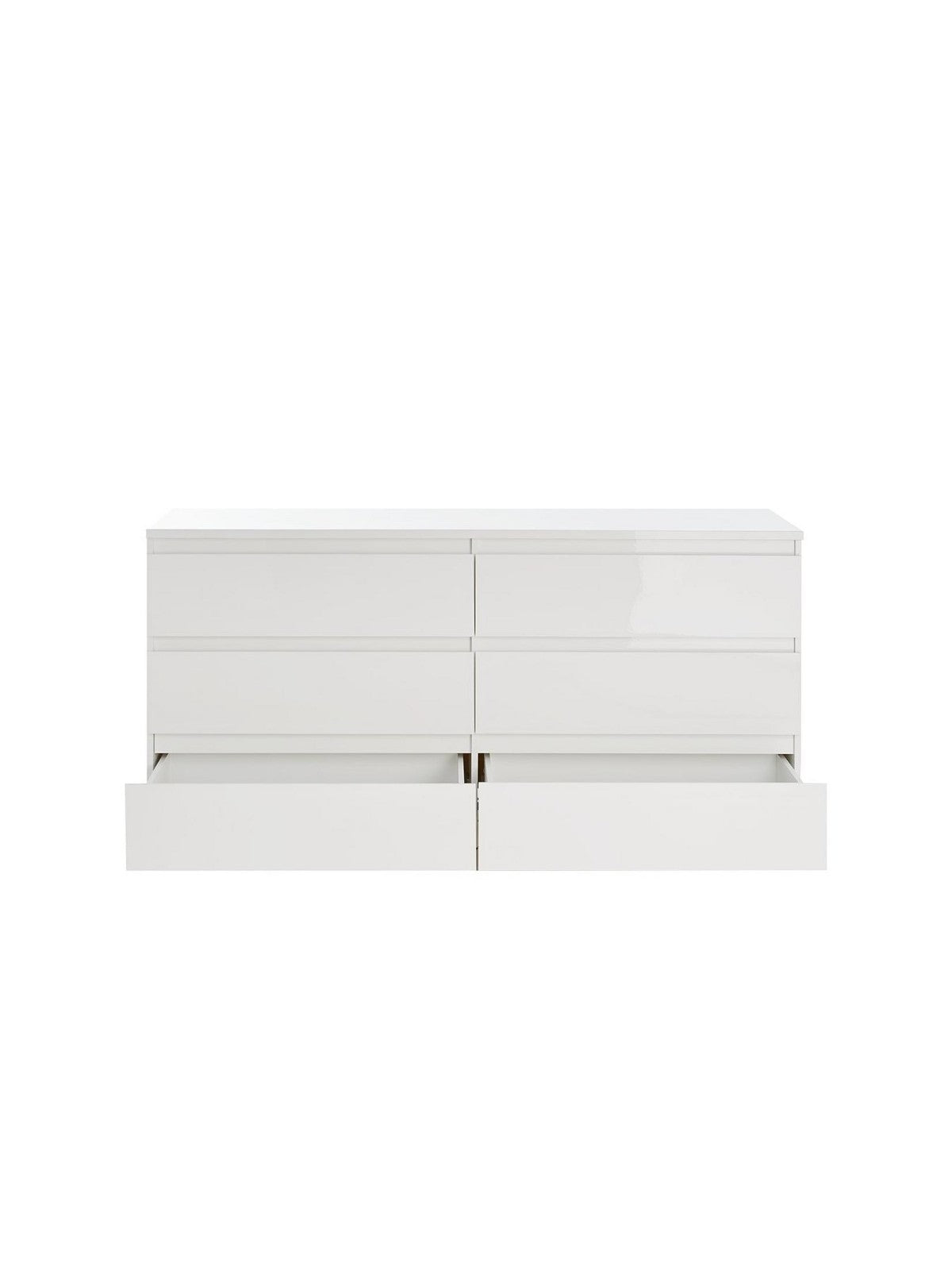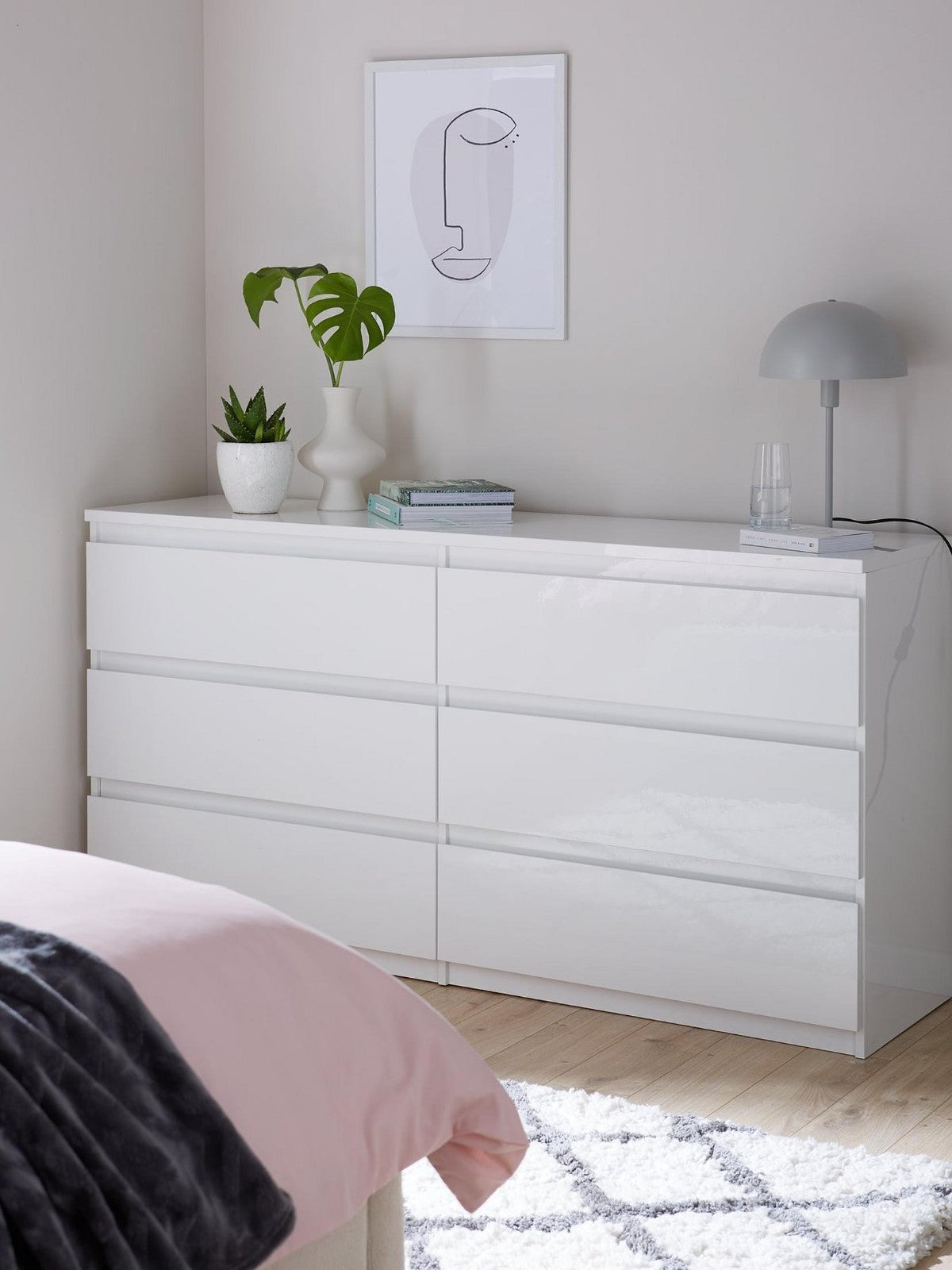 This clothes storage chest features two columns of three drawers which have a handle-free design so that there's nothing to interrupt the look of the high gloss sheen. Each drawer runs smoothly and quietly (even when full of folded fashion) thanks to the easy-glide metal runners.