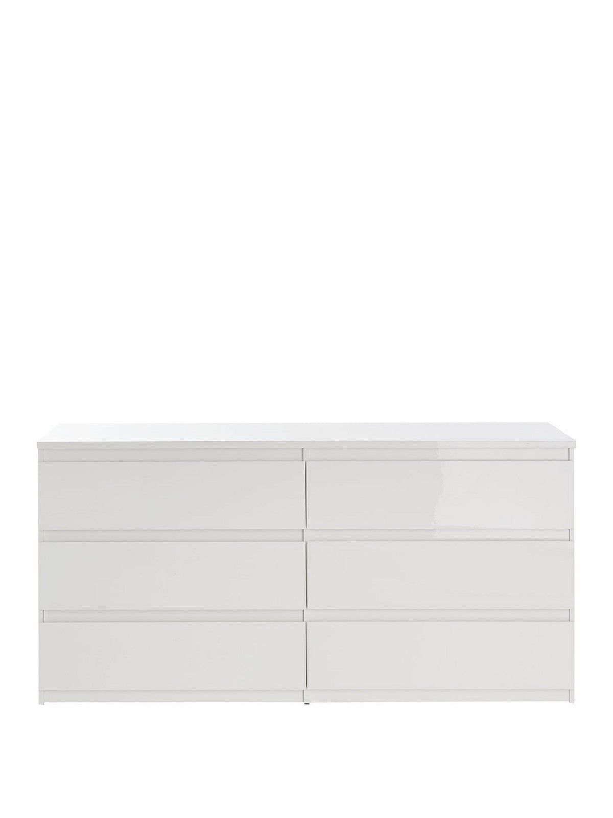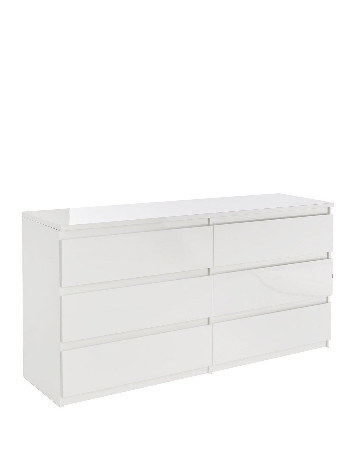 Layton Gloss 6 Drawer Chest White Bedroom Storage Dresser Unit UK