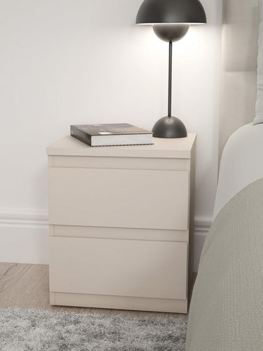 Lisson 2 Drawer Bedside Table Oatmeal Nightstand Cabinet Storage Free UK