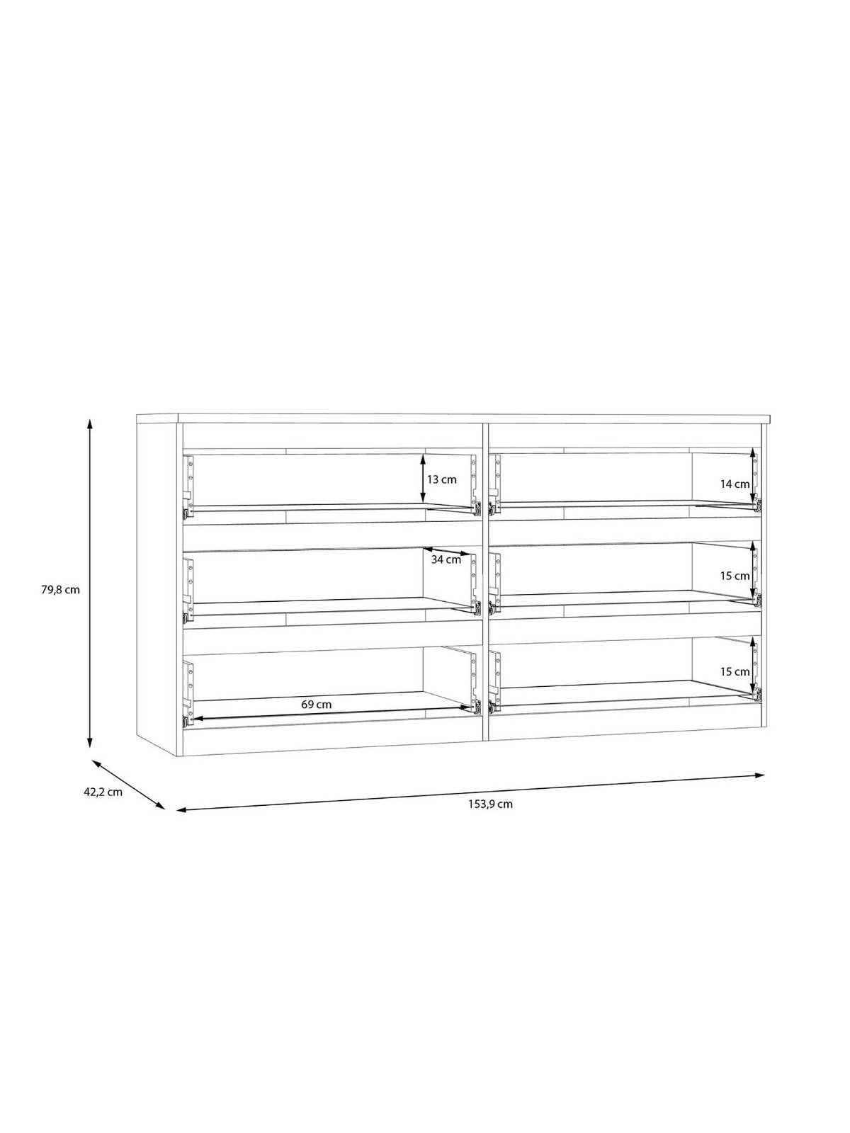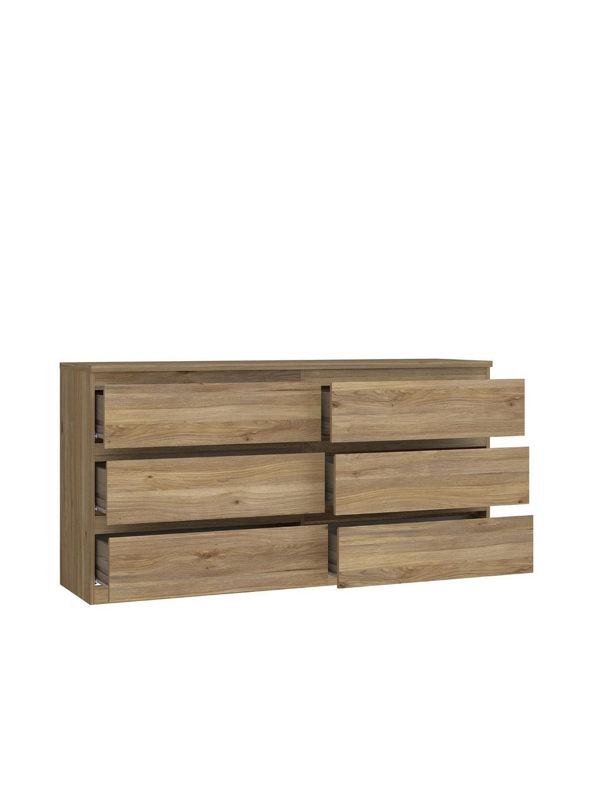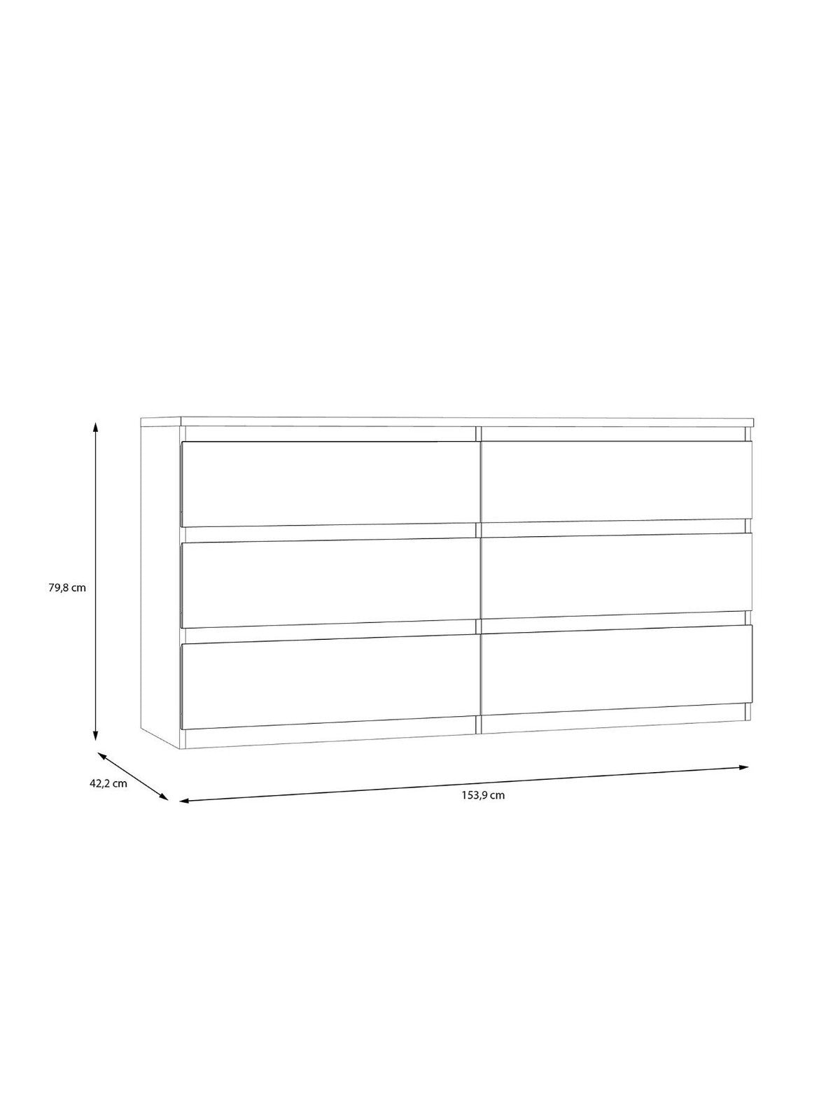 Embrace understated elegance with the Lisson 6 Drawer Chest, featuring a breathtaking new oak-effect finish and a clean, handle-free design. This minimalist piece brings a touch of country cottage warmth to your bedroom while offering substantial storage for clothing and essentials. With six smooth-gliding drawers on metal runners and a matching internal wrap, it combines modern functionality with timeless style, ensuring it looks impeccable from every angle.