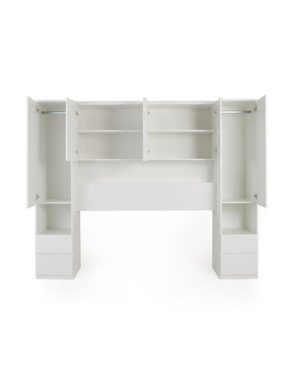 Transform your bedroom into a clutter-free sanctuary with the Lisson Overbed Unit in clean white. This innovative storage solution makes smart use of the space surrounding your bed, combining sleek handle-free design with exceptional organization. Featuring a matching interior wrap for a seamless look from every angle, it provides a place for everything—from hanging clothes to bedside essentials—while maintaining a calm, minimalist aesthetic.