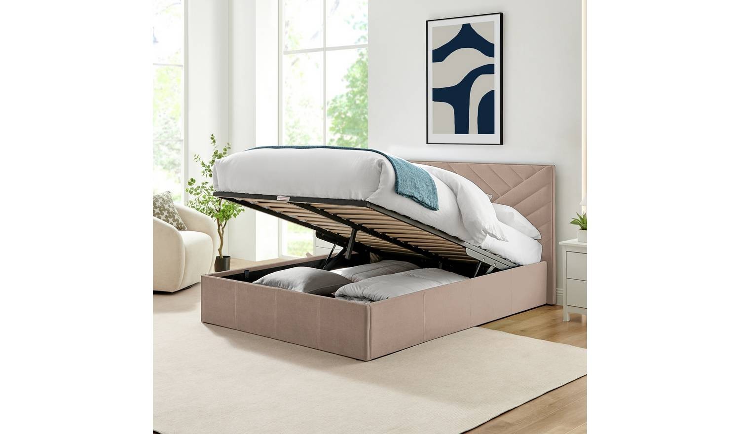 Luca Double End Lift Ottoman Bed Latte Easy Assembly Home Furniture
