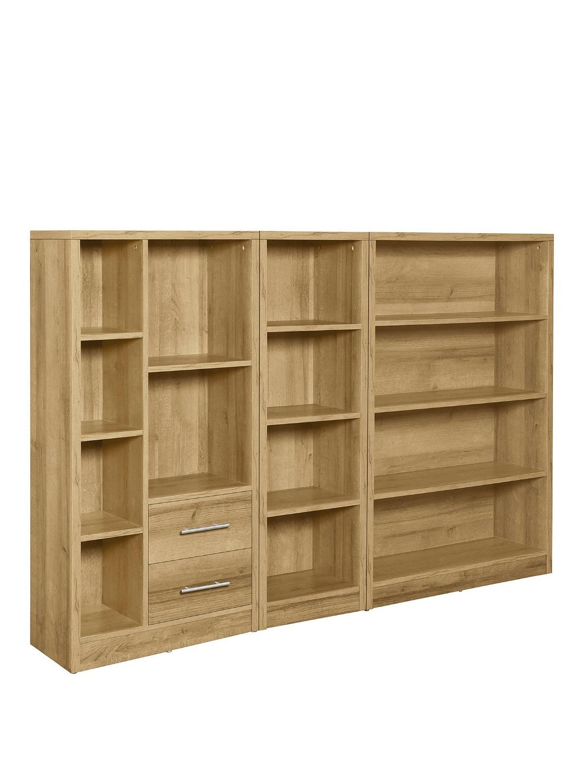Metro 3 Piece Bookcase Package Oak | 2 Drawers | Adjustable Shelves