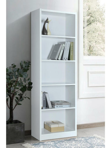 Metro Tall Wide Bookcase White | 5 Fixed Shelves | Modern Storage Unit