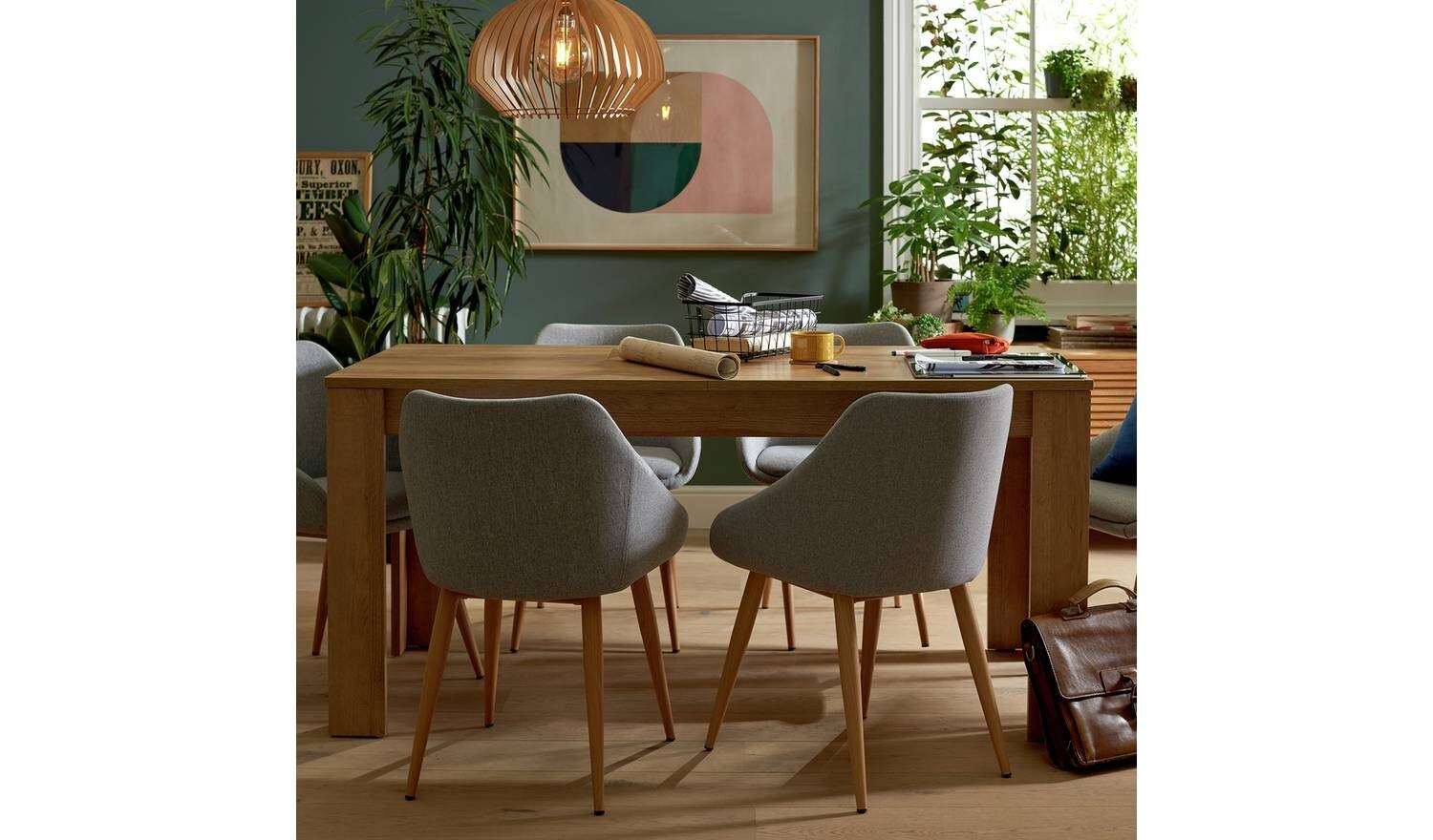 Wood effect table with wood effect legs.
