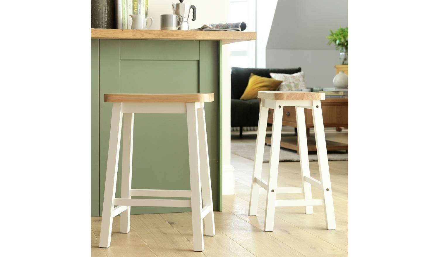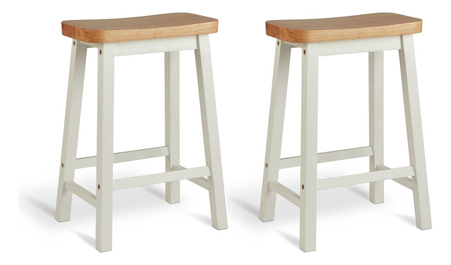 Pair of Saddle Bar Stools Two Tone For Breakfast Bar Counter Set