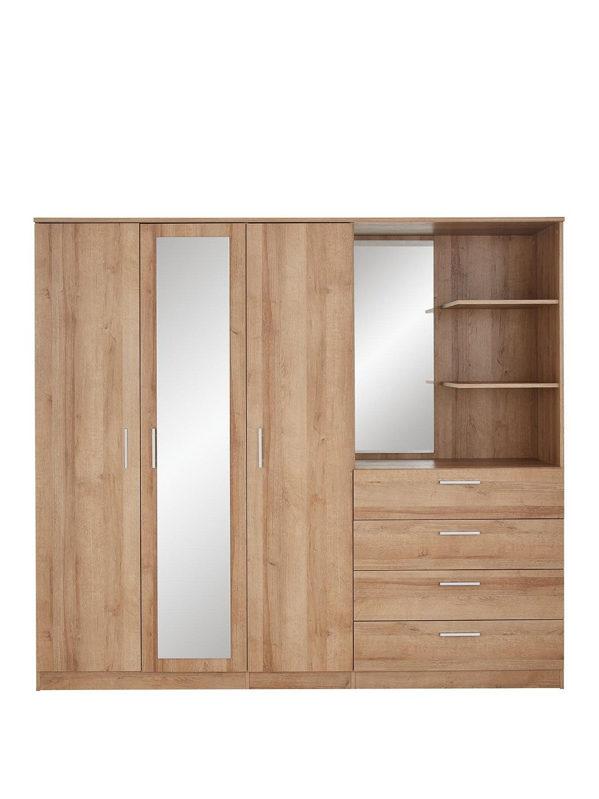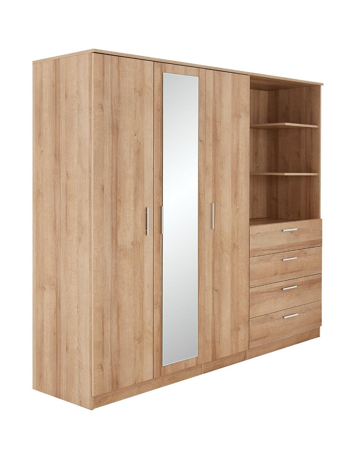 Panama 3 Door, 4 Drawer Combi Wardrobe Oak with shelves Modern Bedroom