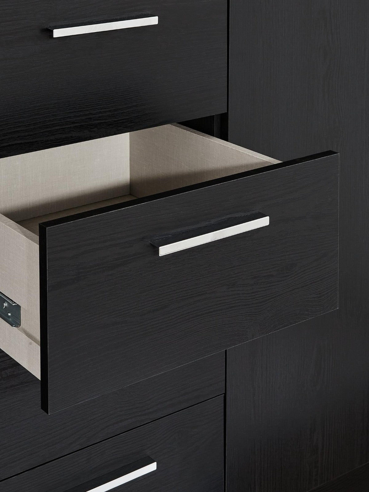 The central drawers operate on easy-glide metal runners for quiet, effortless access, even when full.