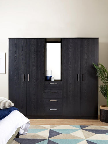 Panama 4 Door 4 Drawer Combi Wardrobe with Mirror Black Modern Bedroom Furniture