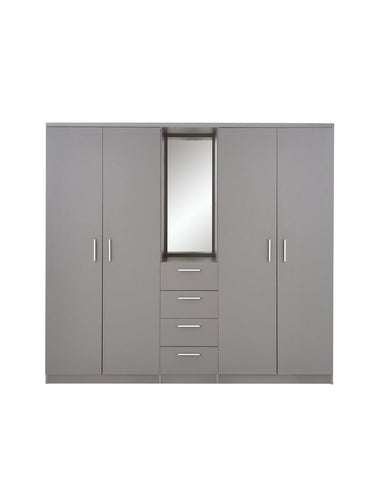 Panama 4 Door Wardrobe with Mirror & 4 Drawers | Grey Finish | Modern Storage