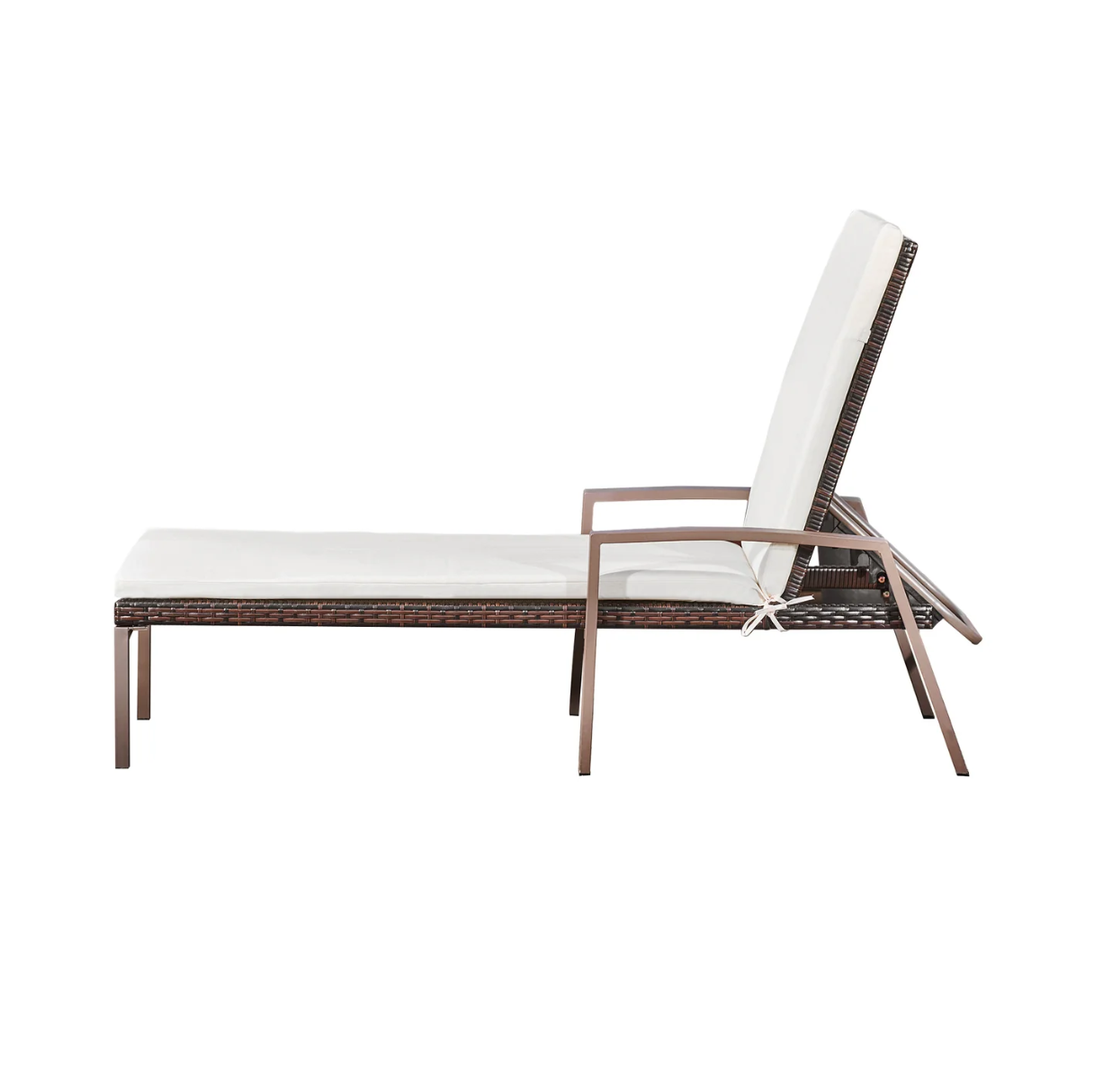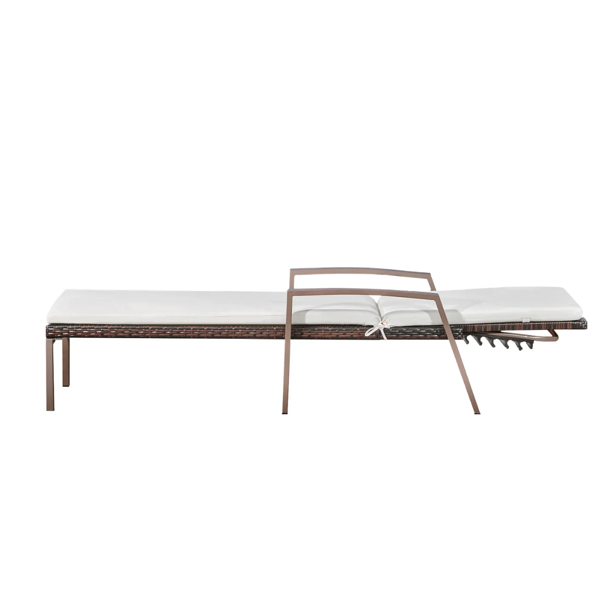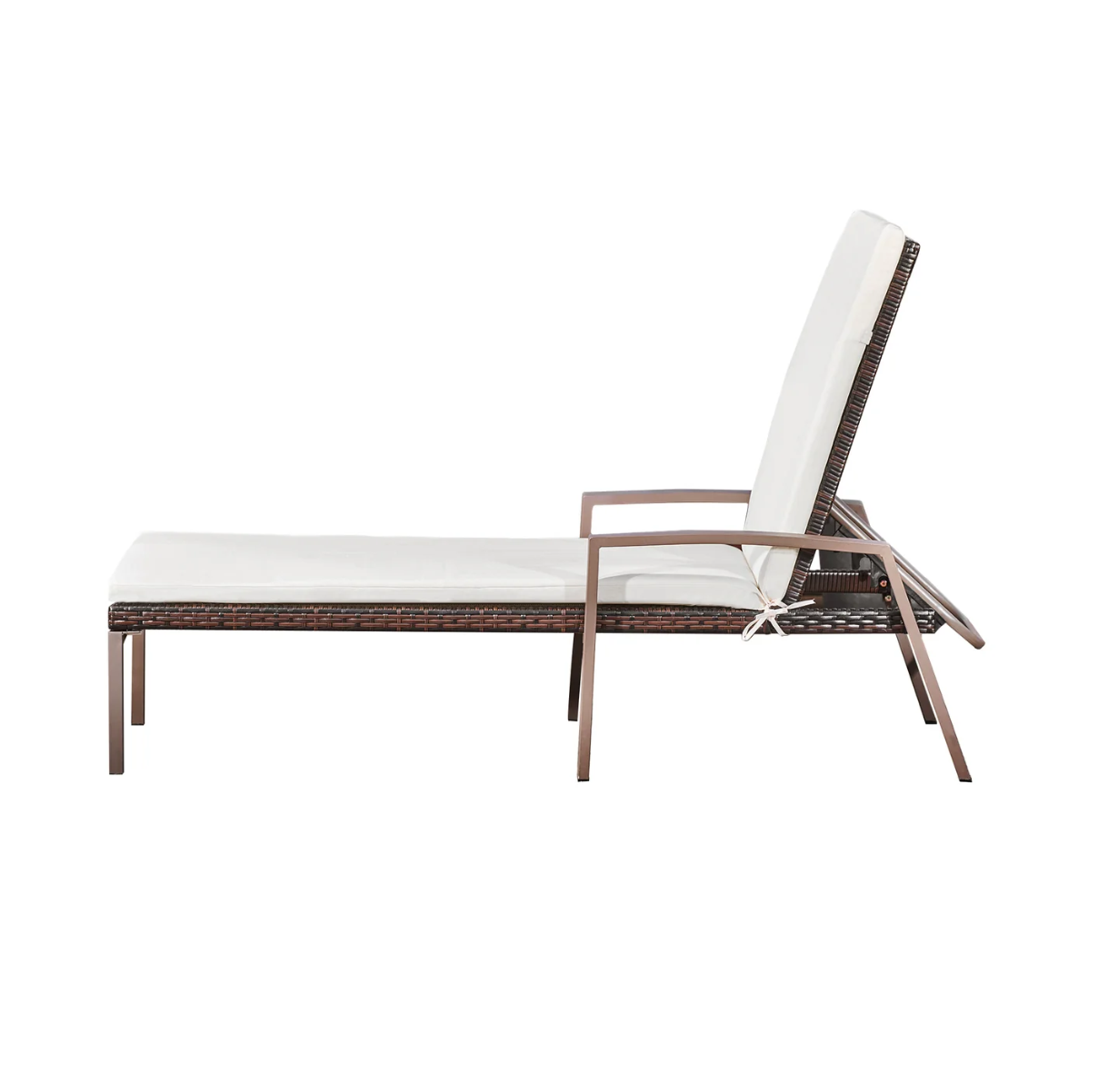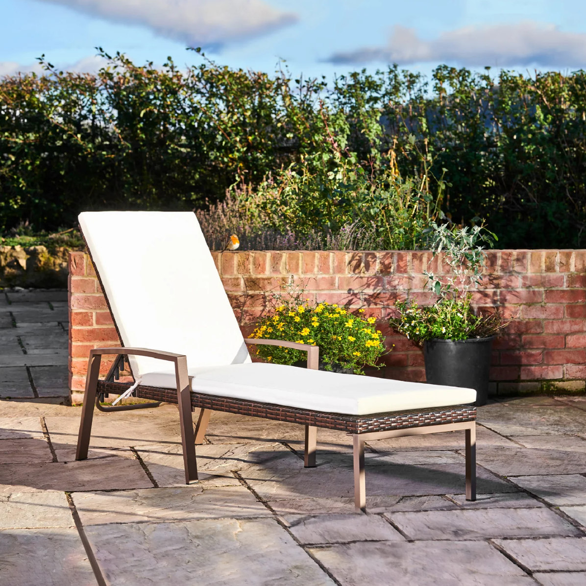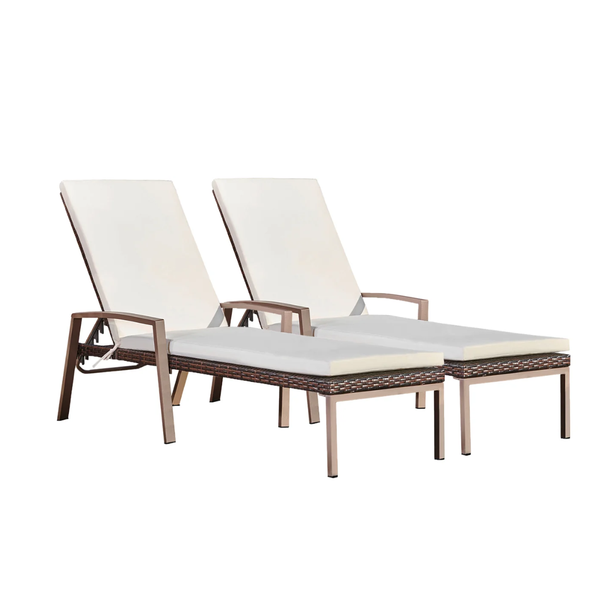 Peaktop 2 Pcs Rattan Sun Loungers Brown/Cream | 6 Positions | Outdoor Set