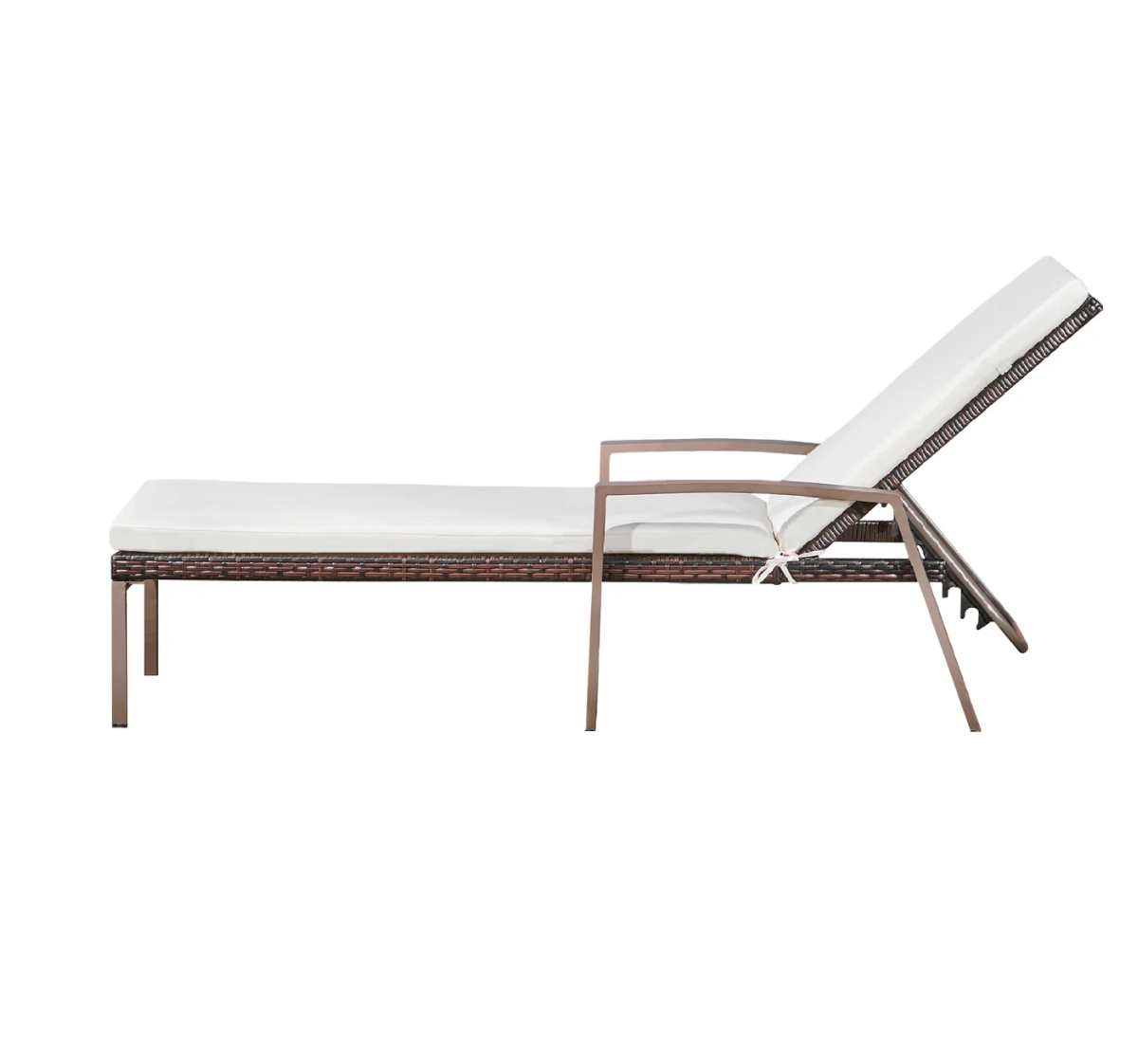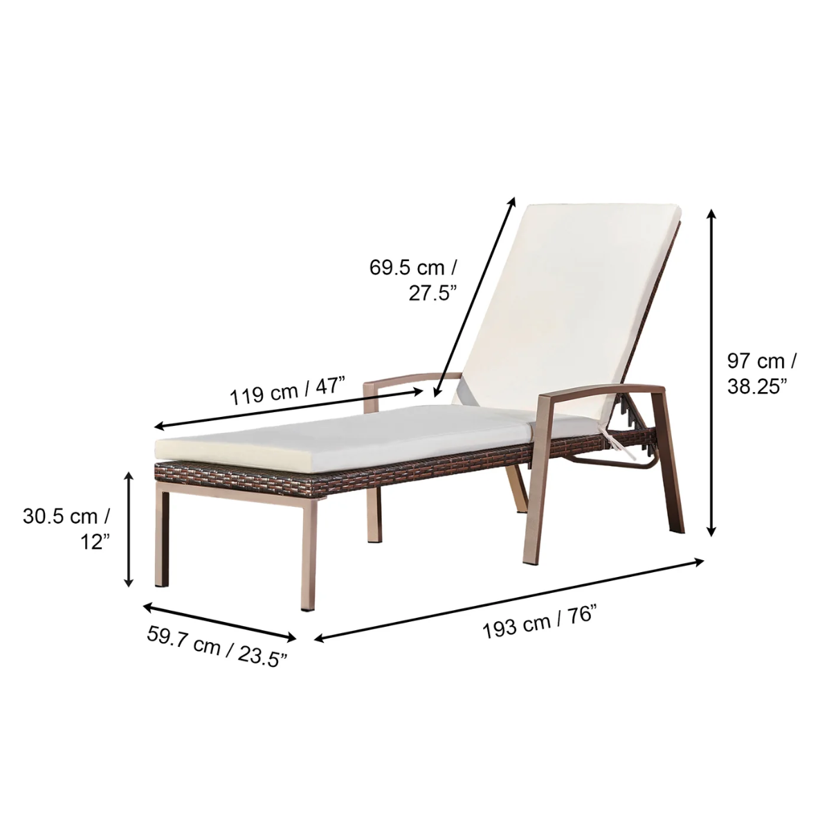 Ideal for those seeking durable and stylish outdoor furniture, this set offers exceptional value through its combination of adjustable comfort, weather-resistant materials, and sophisticated design. The dark brown and cream colour scheme complements most outdoor decor styles.
