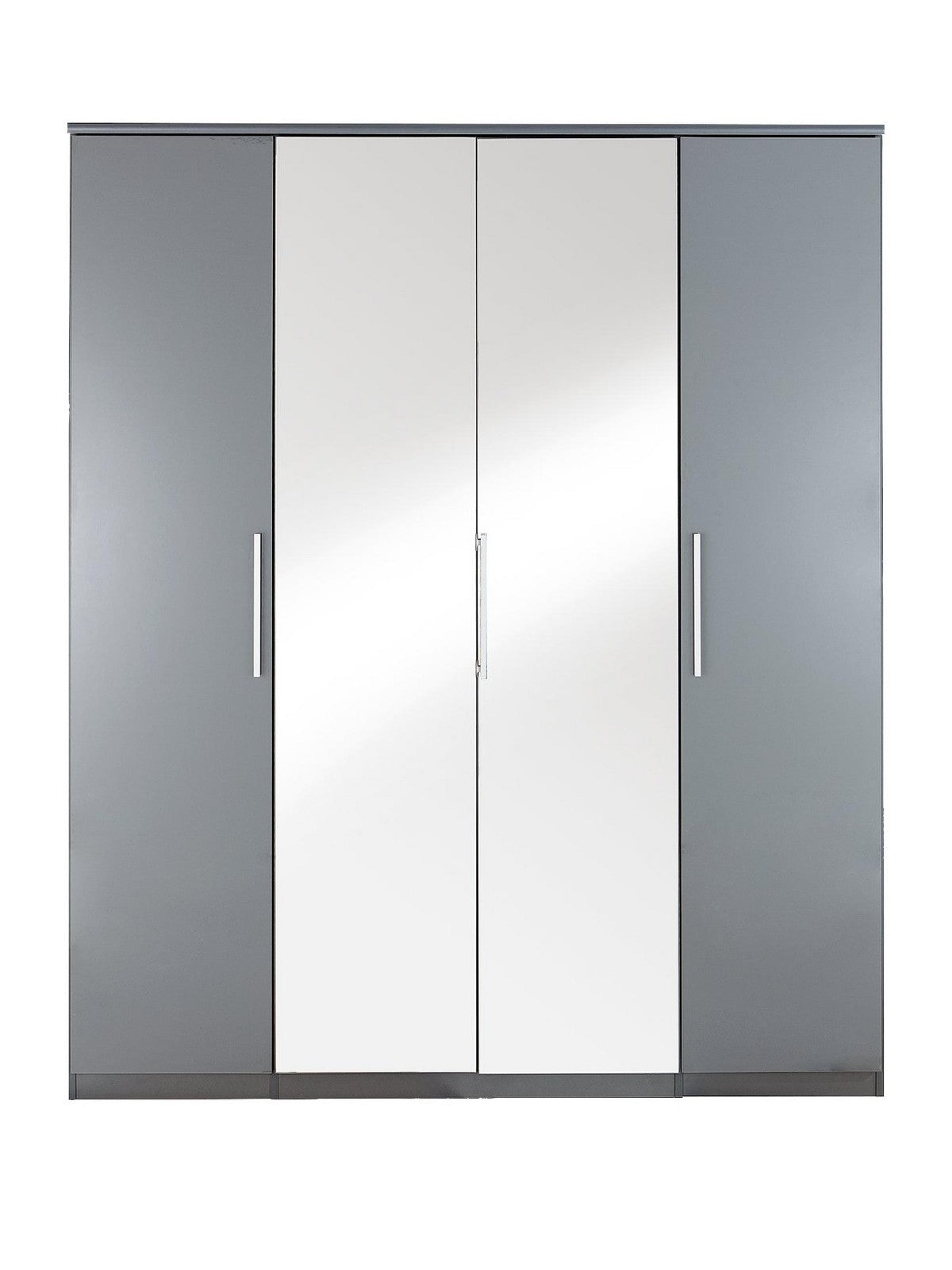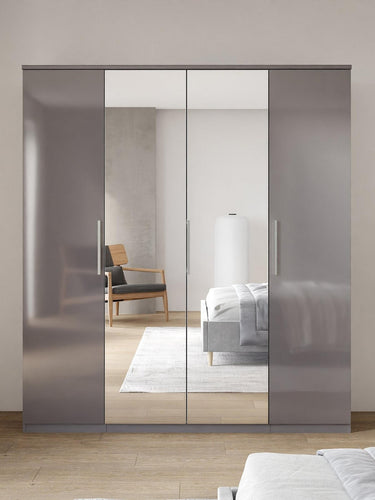Prague Gloss 4 Door 3 Drawer Wardrobe Grey Bedroom Storage Mirror UK