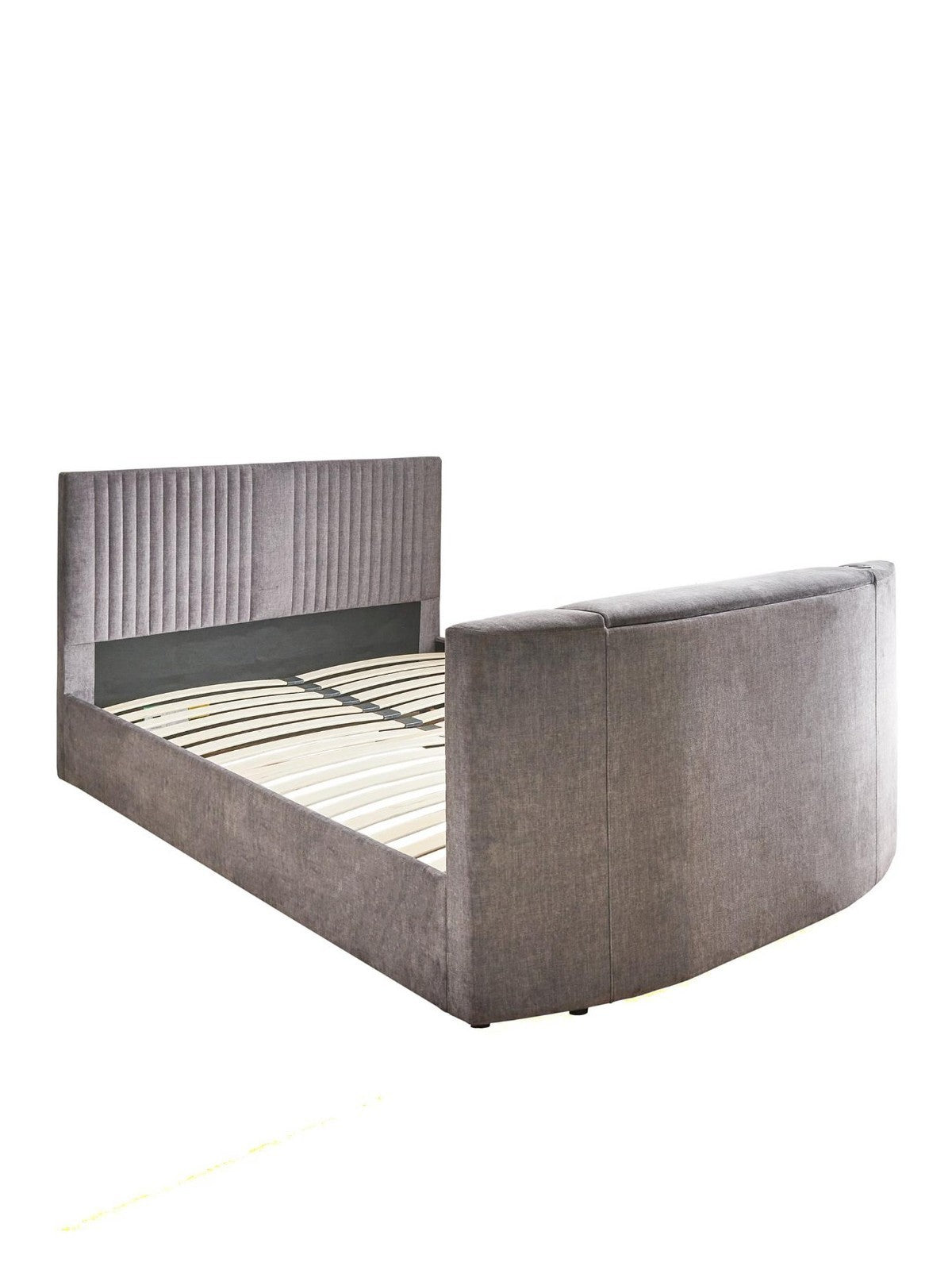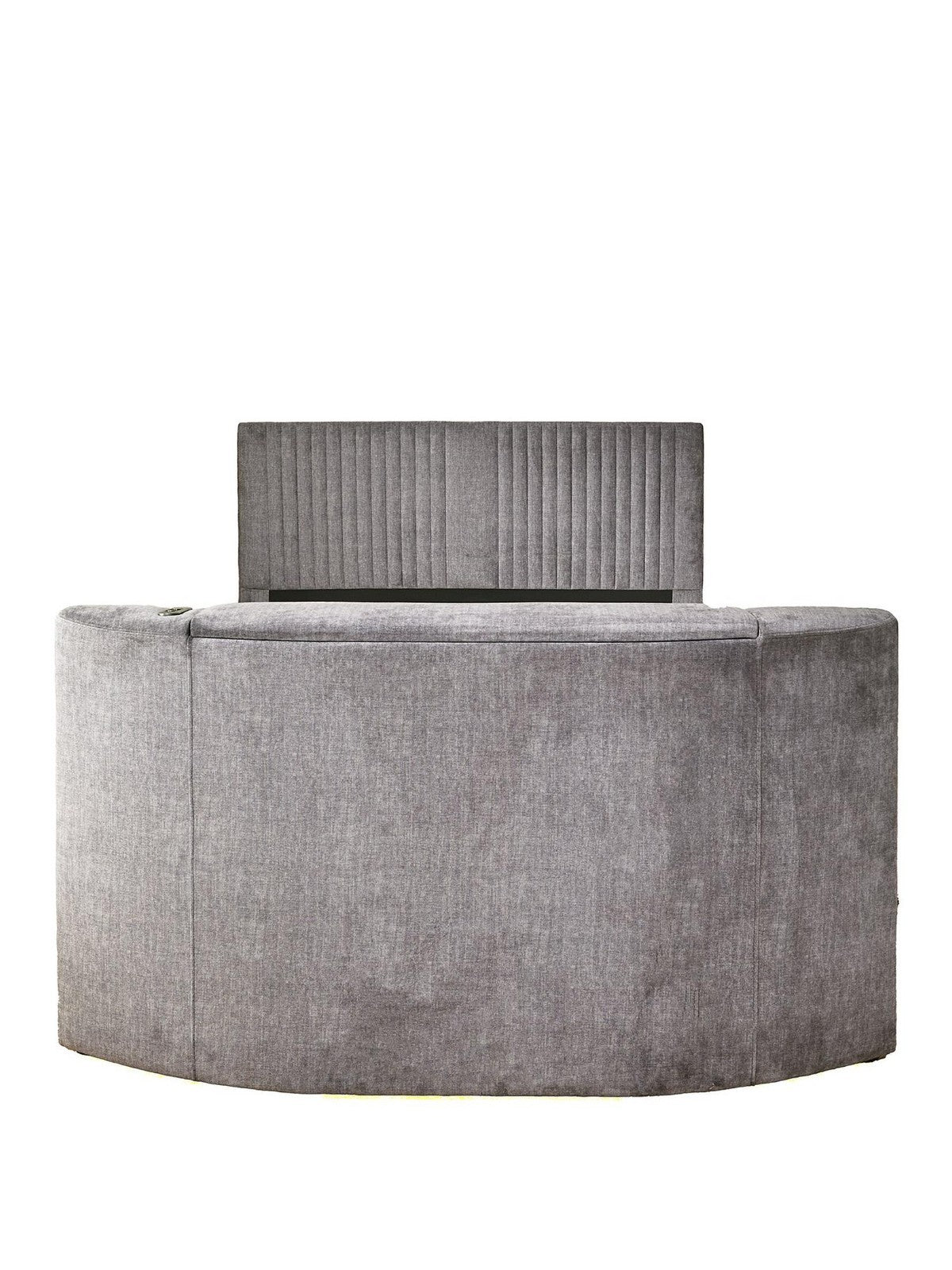 Upholstered in a rich grey fabric that's wonderfully textural, the foot end has space for a TV with a screen size between 20 and 42 inches (measured diagonally from corner to corner). Push one of the sleek silver buttons and it will automatically rise into view, press the other and it will slowly lower back out of sight.