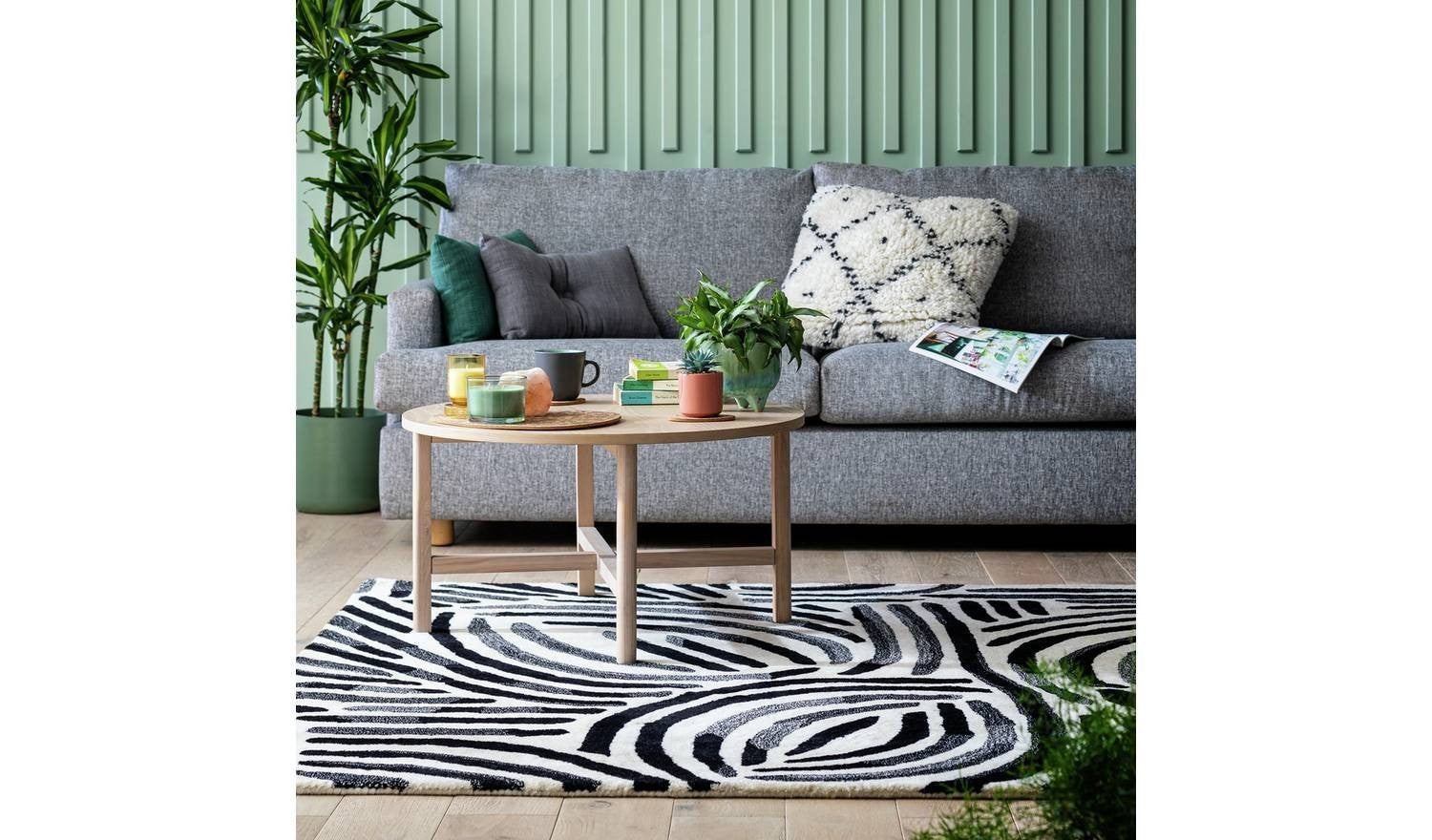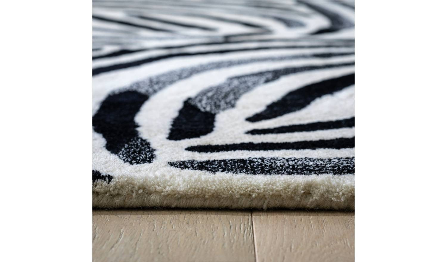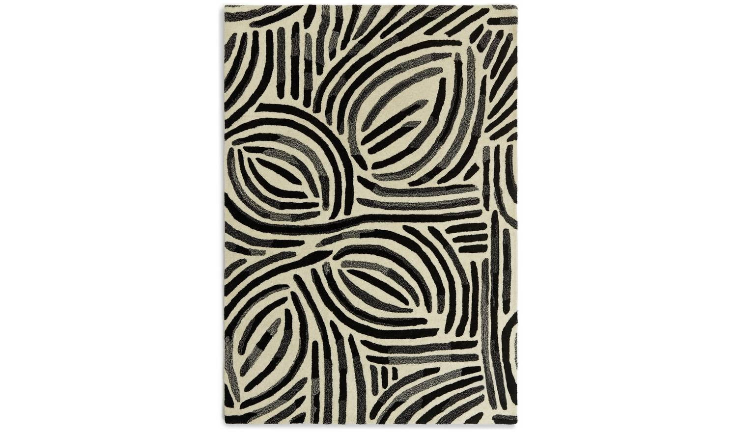 Skandi Brush Marks Black & White Cut Pile Rug