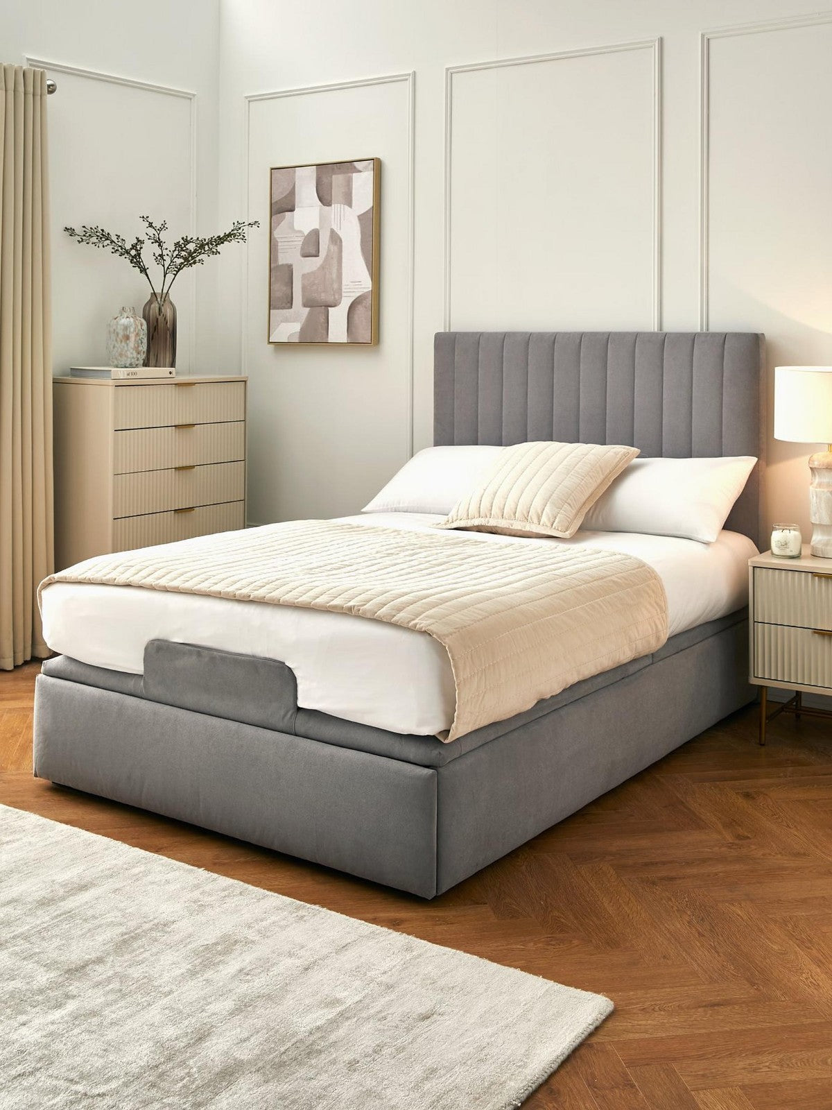 Finished in a contemporary soft grey fabric, creating a sleek and sophisticated focal point for your bedroom.