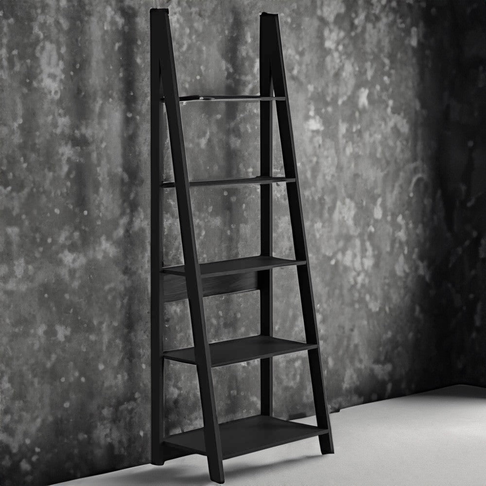 Modern Leaning Style: Tiva 5 Shelf Ladder Bookcase in Black