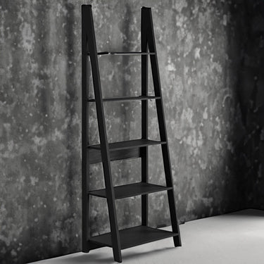 Tiva 5 Shelf Ladder Bookcase - Black | Modern Leaning Shelves | Stylish Display